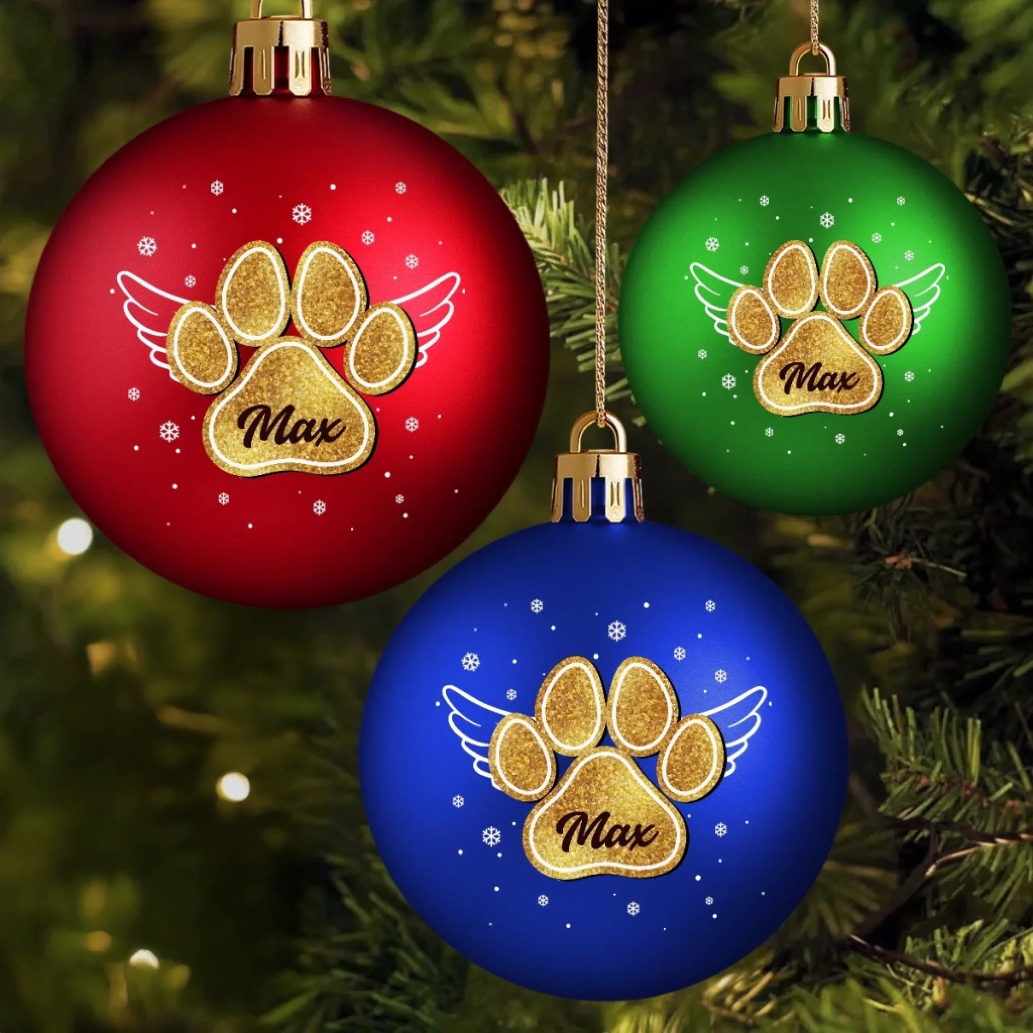 Benutzerdefinierte Farbige Weihnachtskugel – Personalisierte Haustier-Andenken- und Trauergeschenke für Hunde, Katzen – Pfoten unter den Sternen