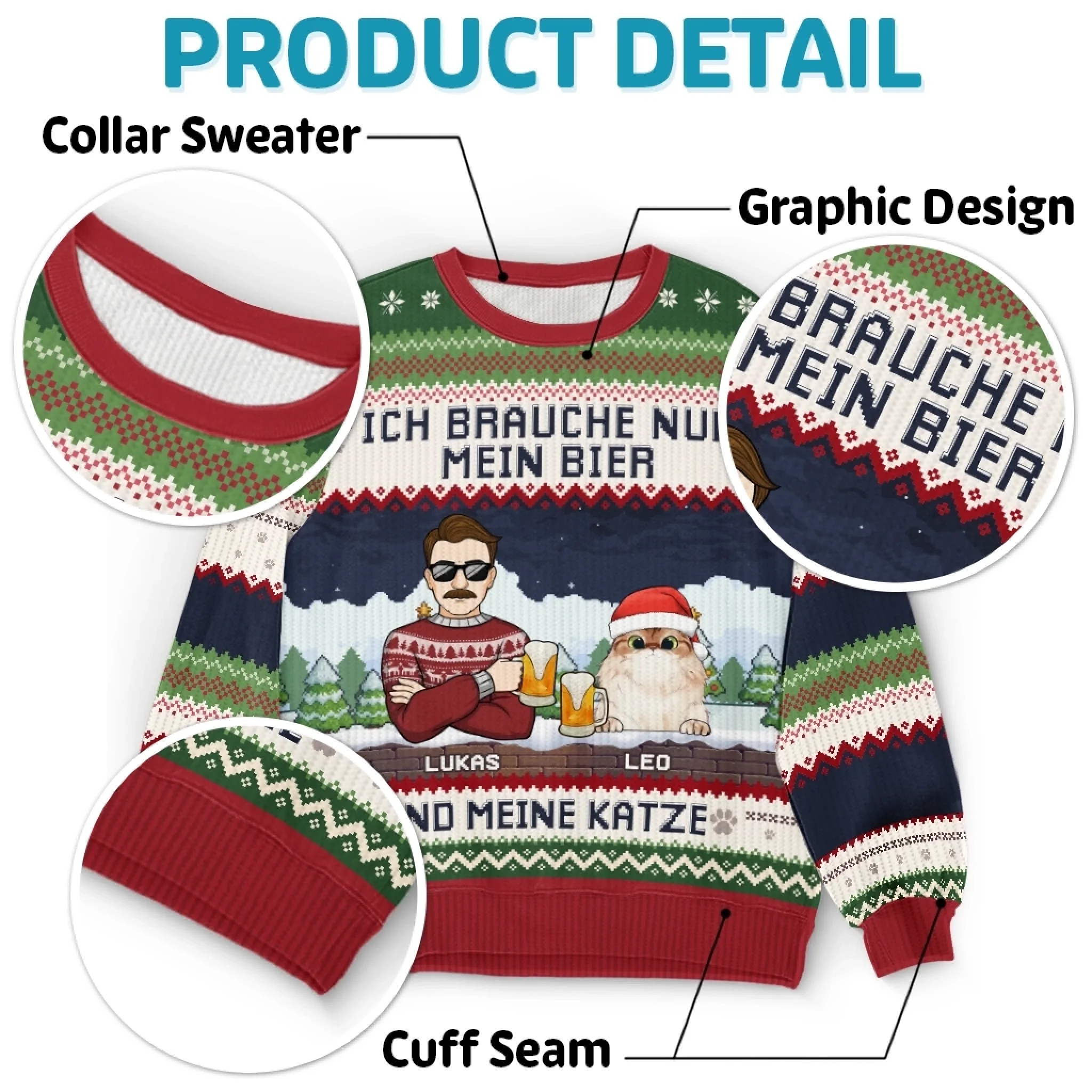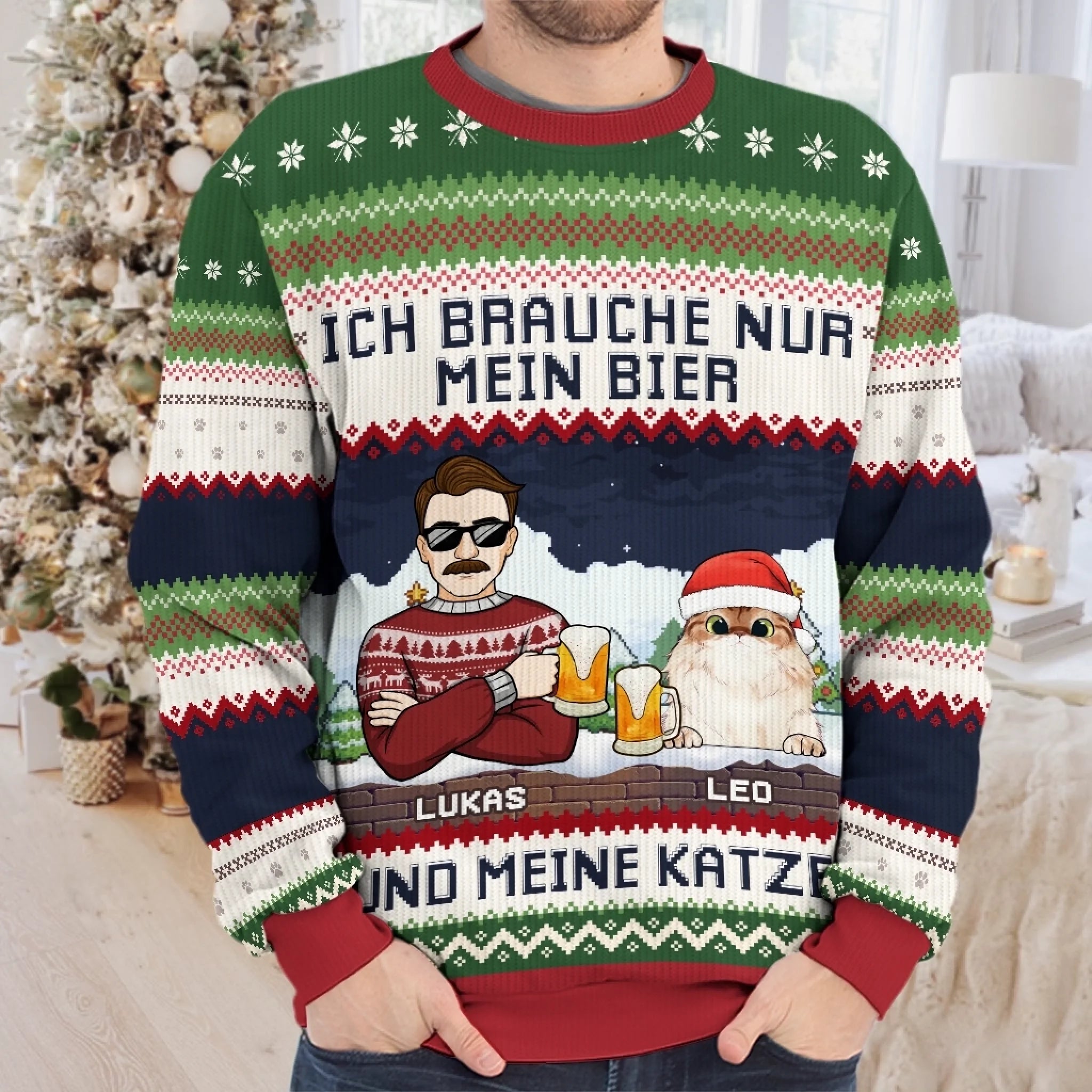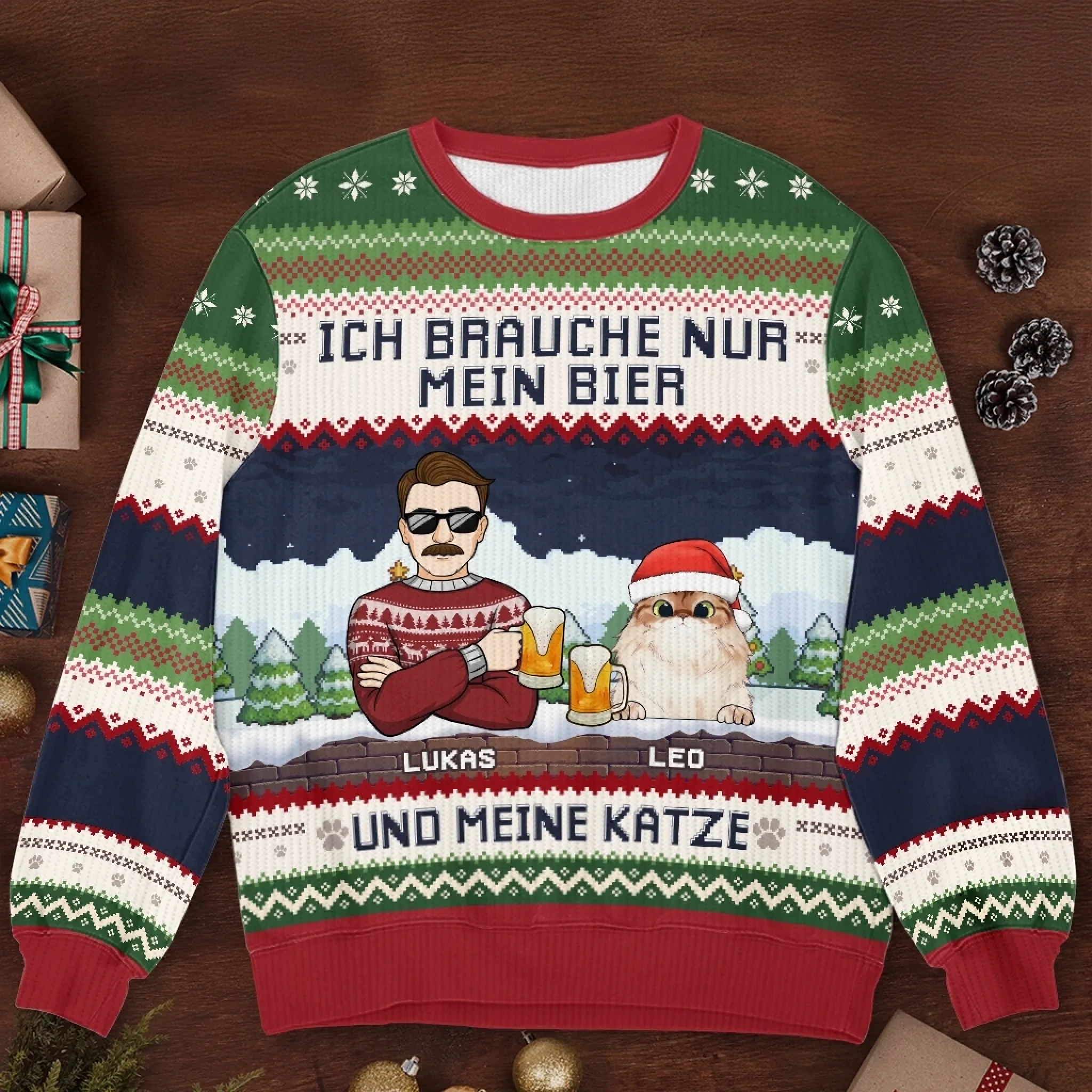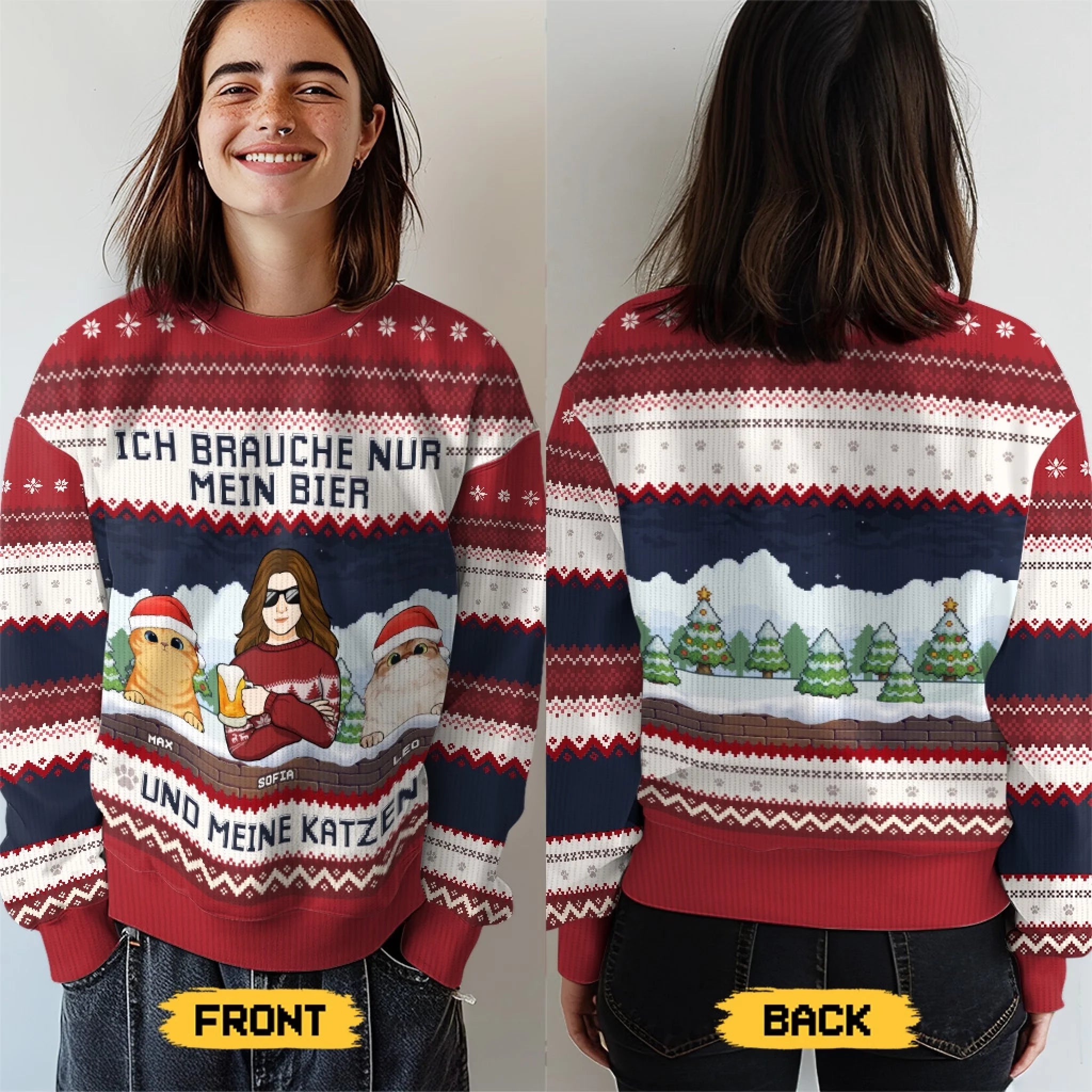 Dieses wunderschöne All-Over-Print-Sweatshirt ist die perfekte Wahl – egal, ob du ein besonderes Geschenk für deine Liebsten suchst oder einfach deine Feiertage mit einem trendigen Outfit verschönern möchtest.