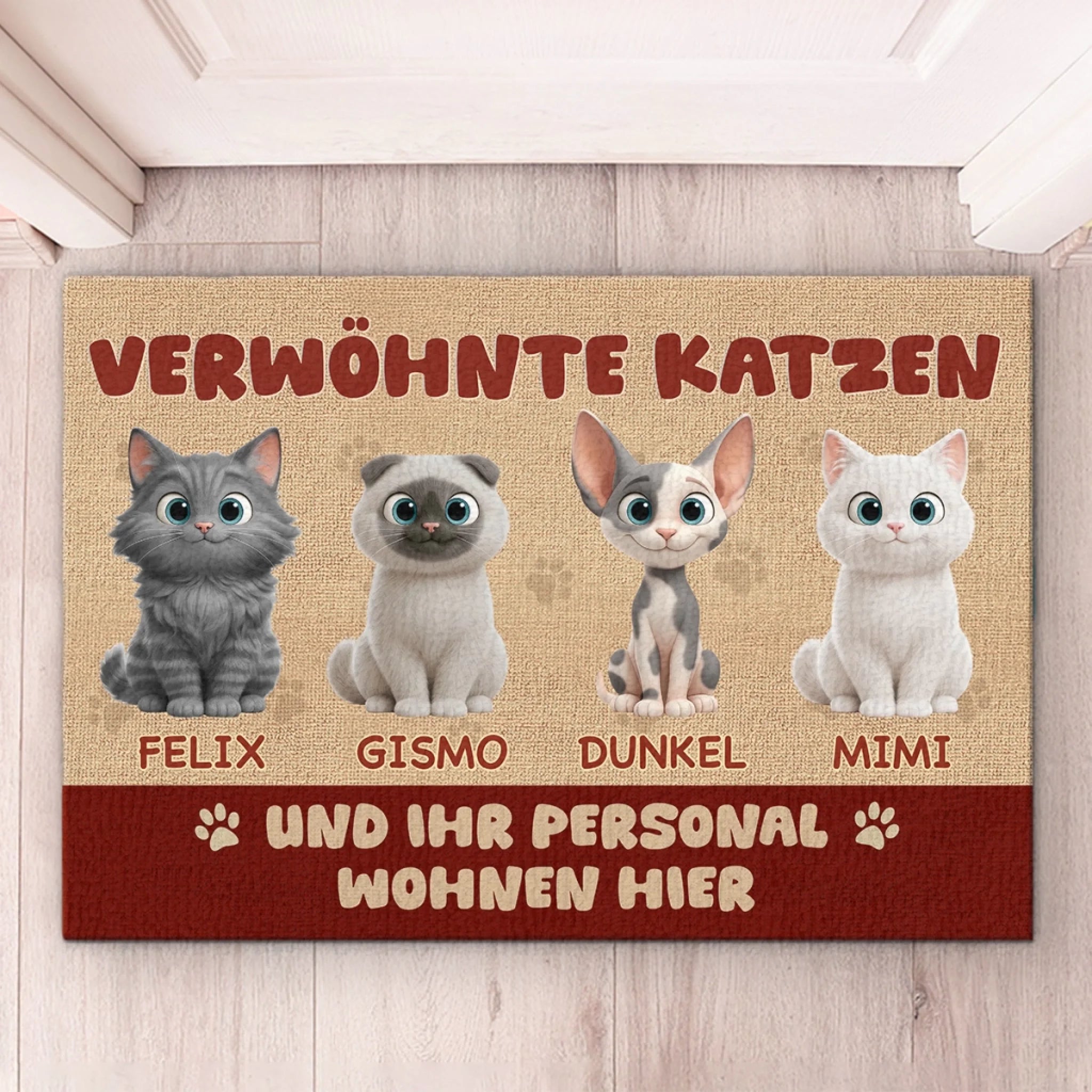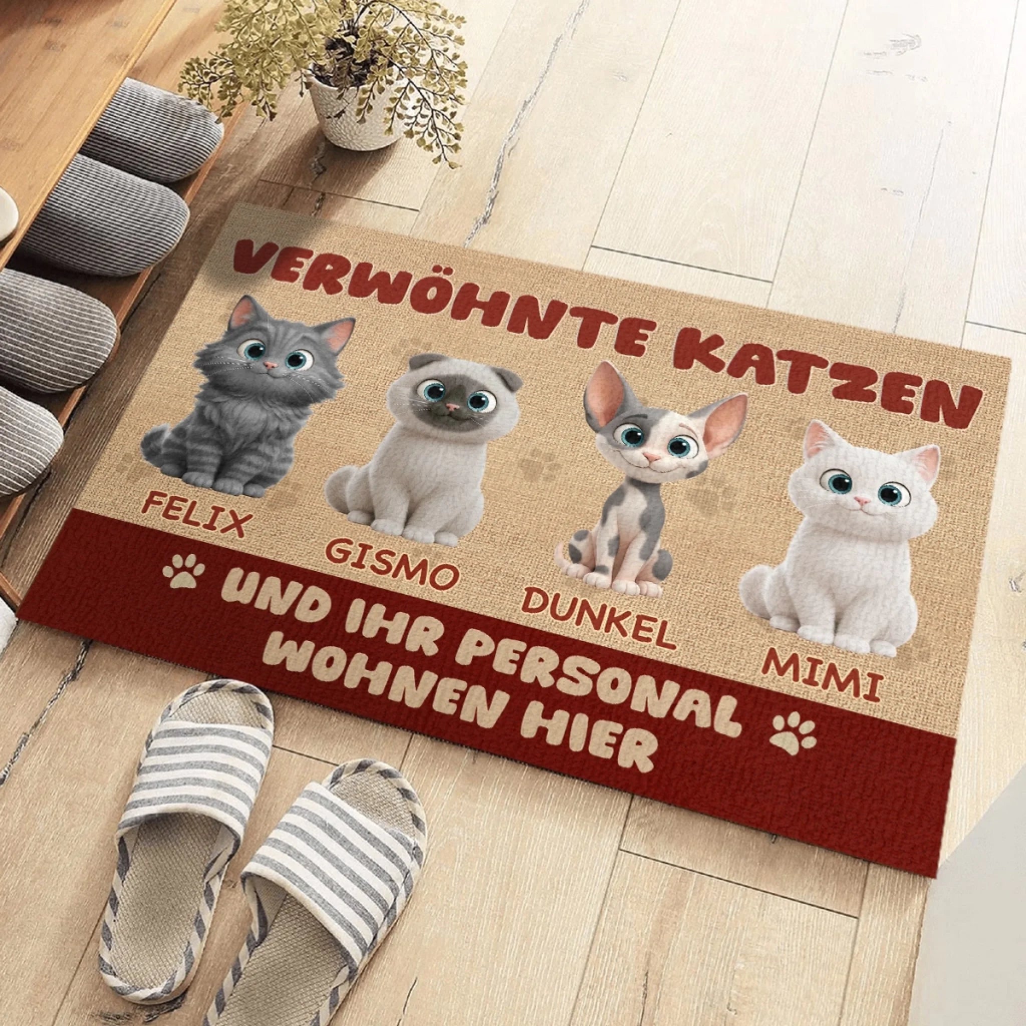 Individuelle Dekomatte Für Zuhause – Personalisierte Geburtstagsgeschenke Für Katzenliebhaber, Katzenmama Und Katzenpapa – Verwöhnte Katzen Und Ihr Hauspersonal Wohnen Hier