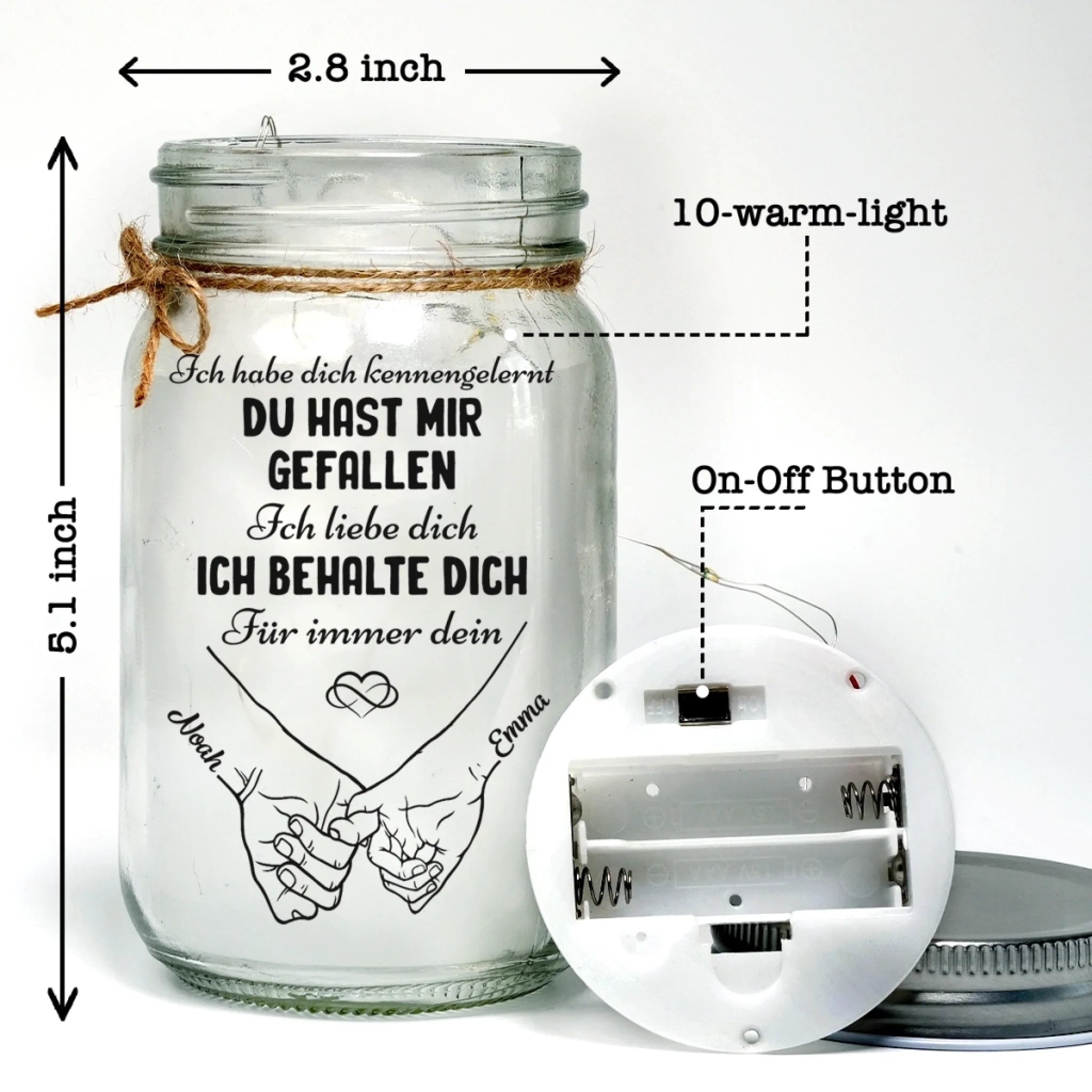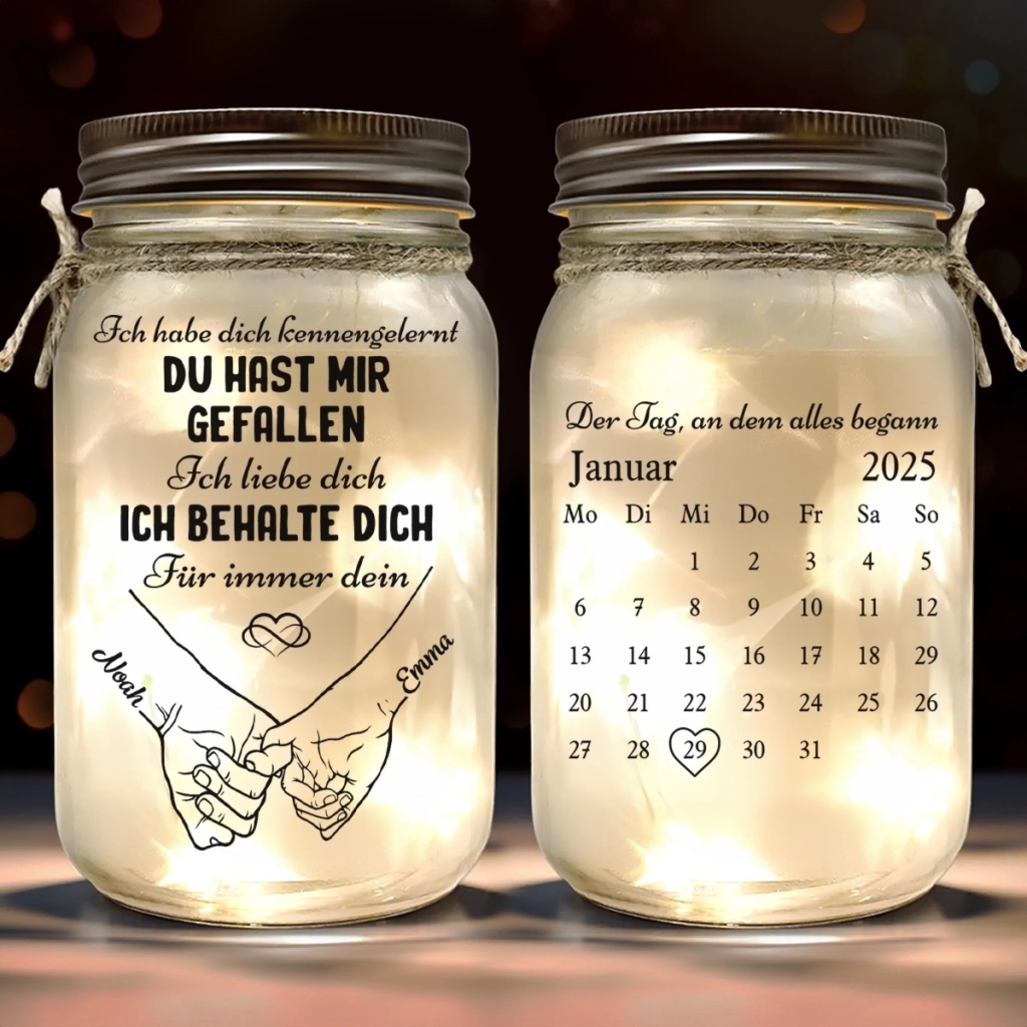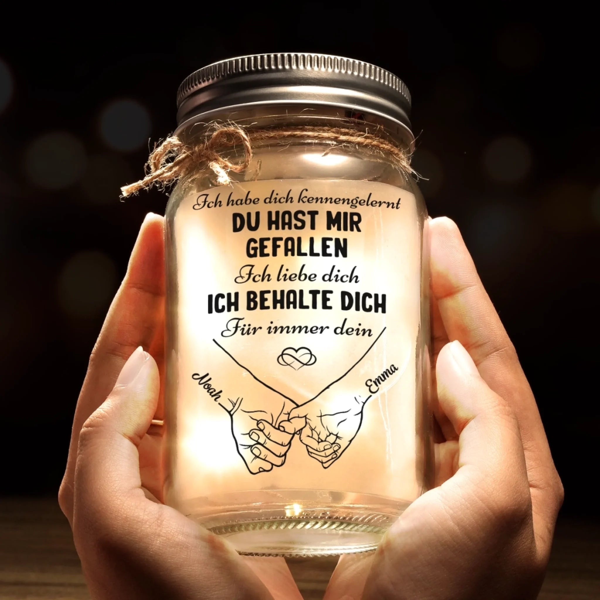 Individuelles Mason Jar Licht - Personalisierte Hochzeitsgeschenke Zum Jahrestag Für Mann Und Frau, Sie Und Ihn - Liebe, Abgefüllt Und Leuchtend