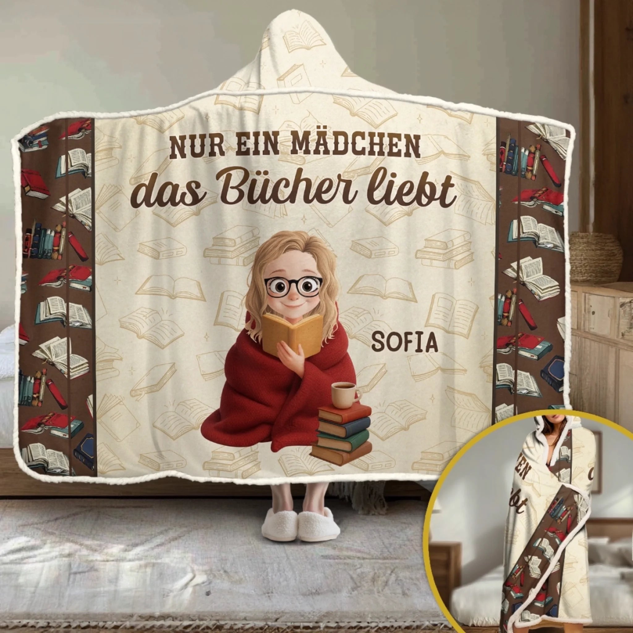 Personalisierte Affirmationsdecke, Hoodiedecke - Personalisierte Weihnachtsgeschenke Für Buchliebhaber, Bücherwürmer, Leser - Nur Ein Mädchen, Das Bücher Liebt