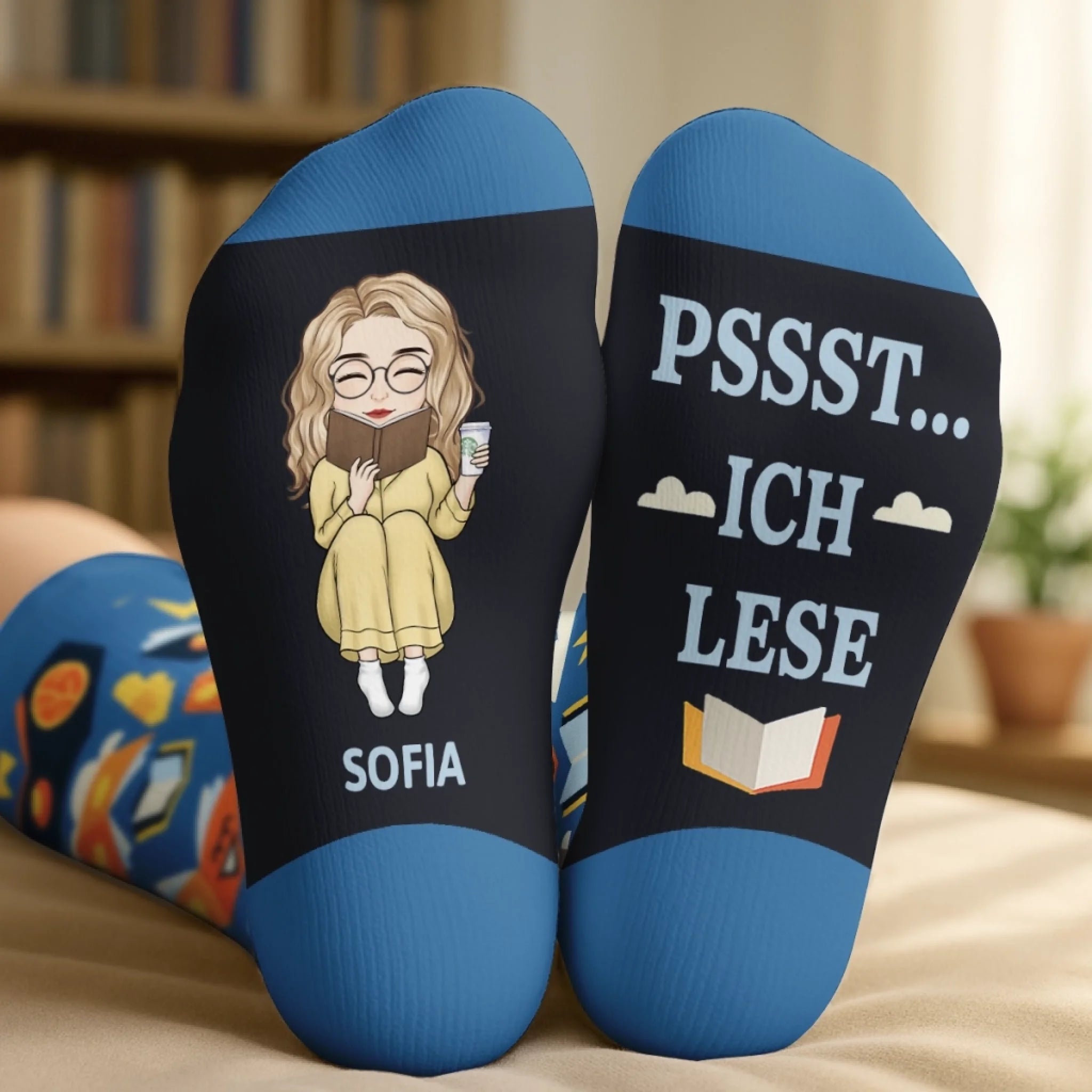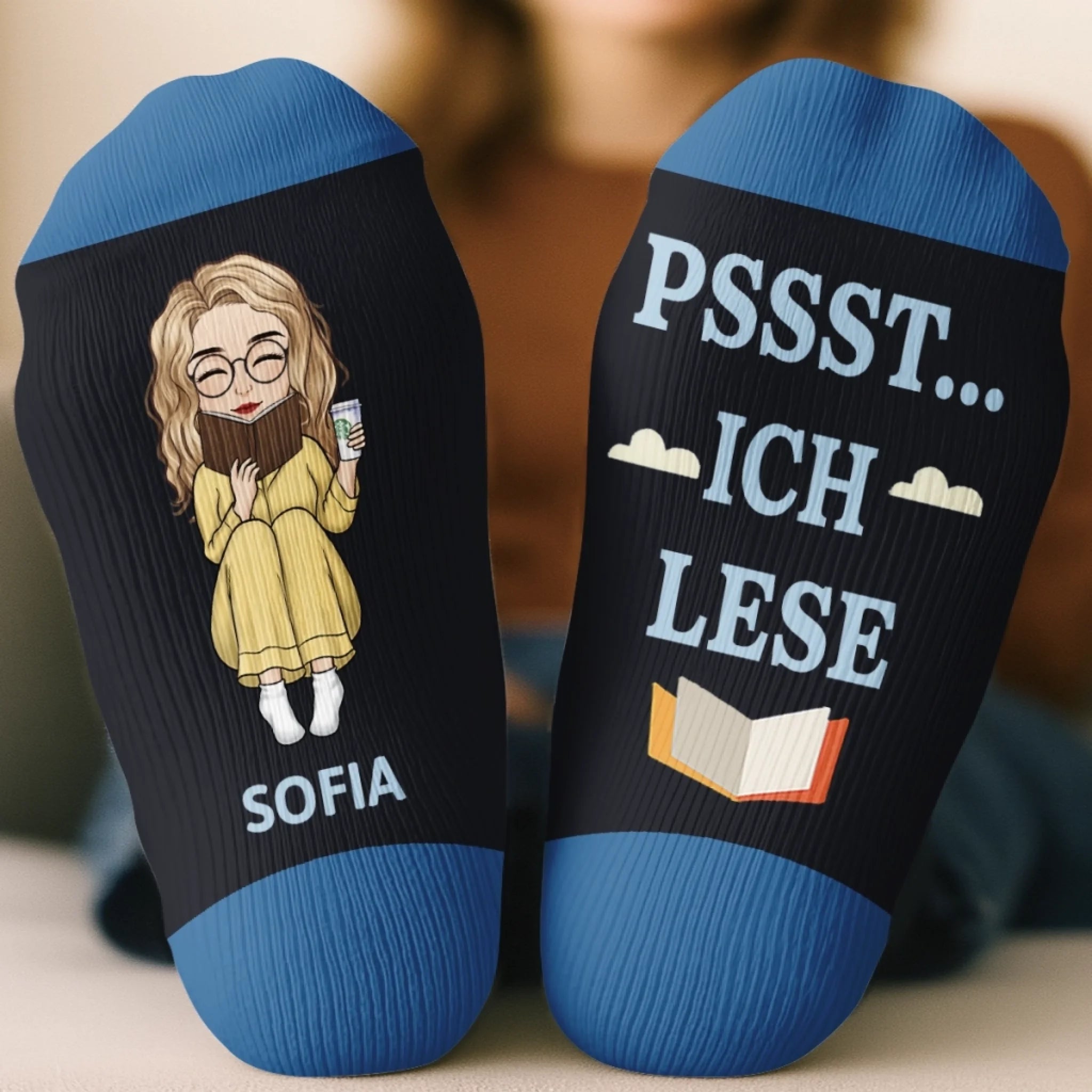 Personalisierte Crew-Socken – Personalisierte Buch-Geschenke für Bücherliebhaber, Leseratten und Vielleser – Leseratte in der Pause