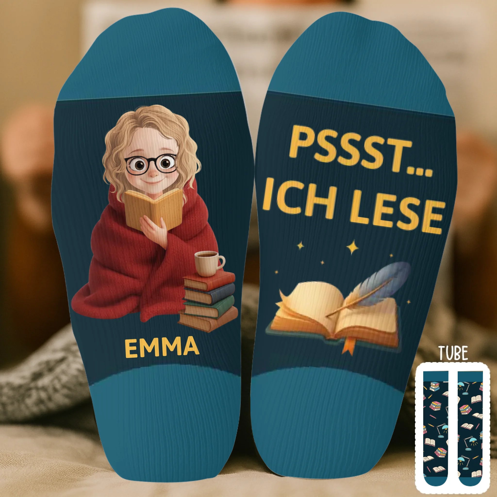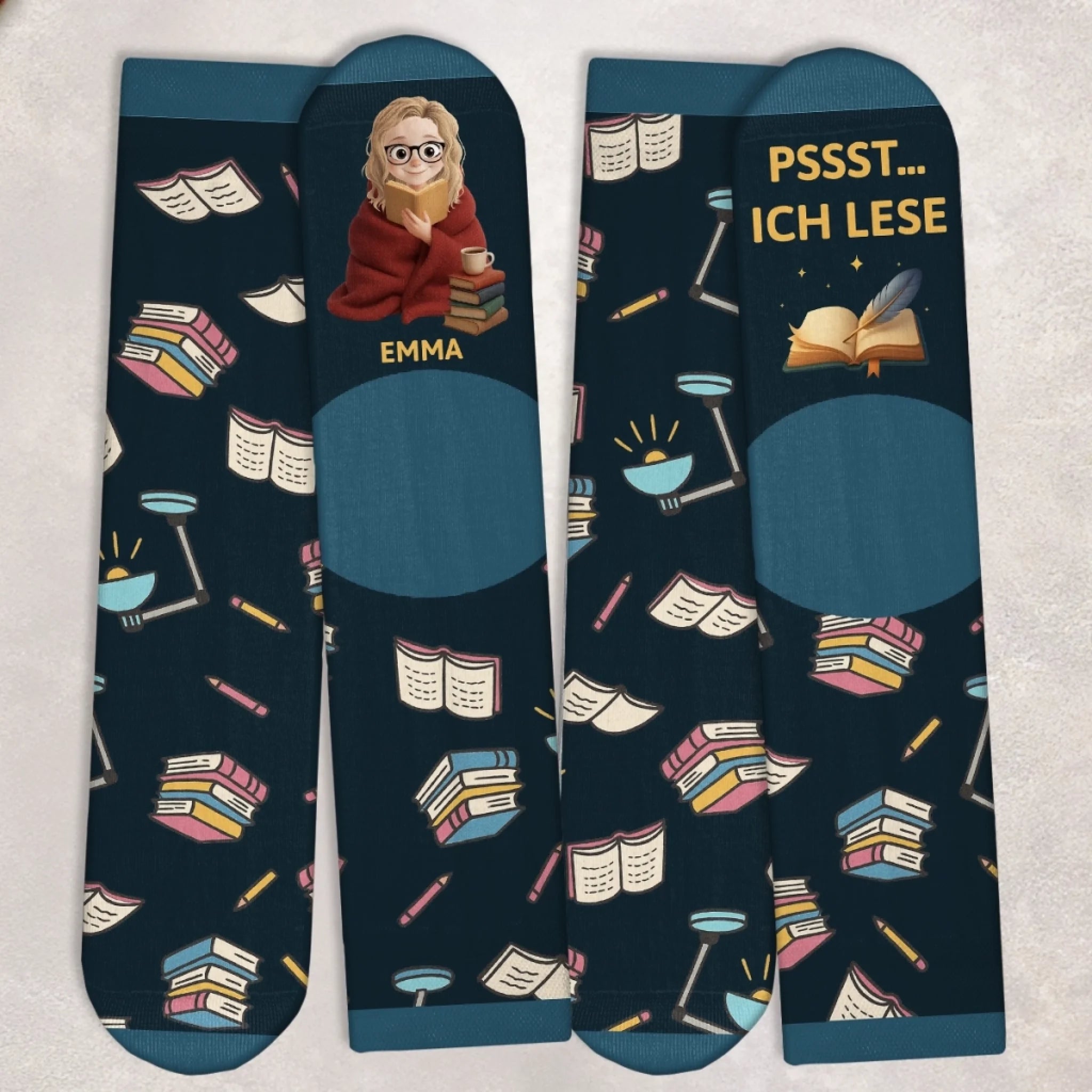 Personalisierte Crew-Socken – Personalisierte Buch-Geschenke für Bücherliebhaber, Leseratten und Vielleser - Nur Ein Mädchen, Das In Büchern Versinkt