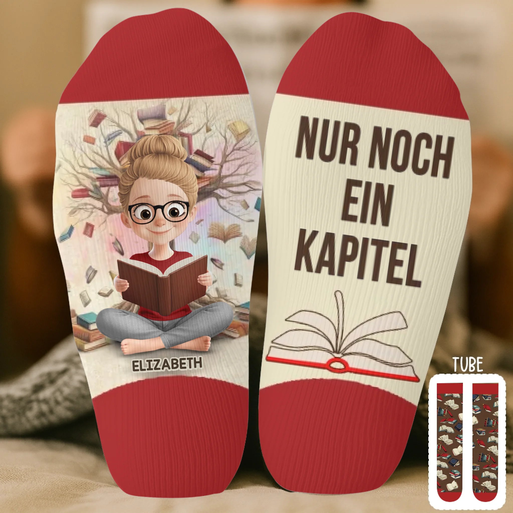 Personalisierte Crew-Socken – Personalisierte Buch-Geschenke für Bücherliebhaber, Leseratten und Vielleser – Nur Noch Ein Kapitel