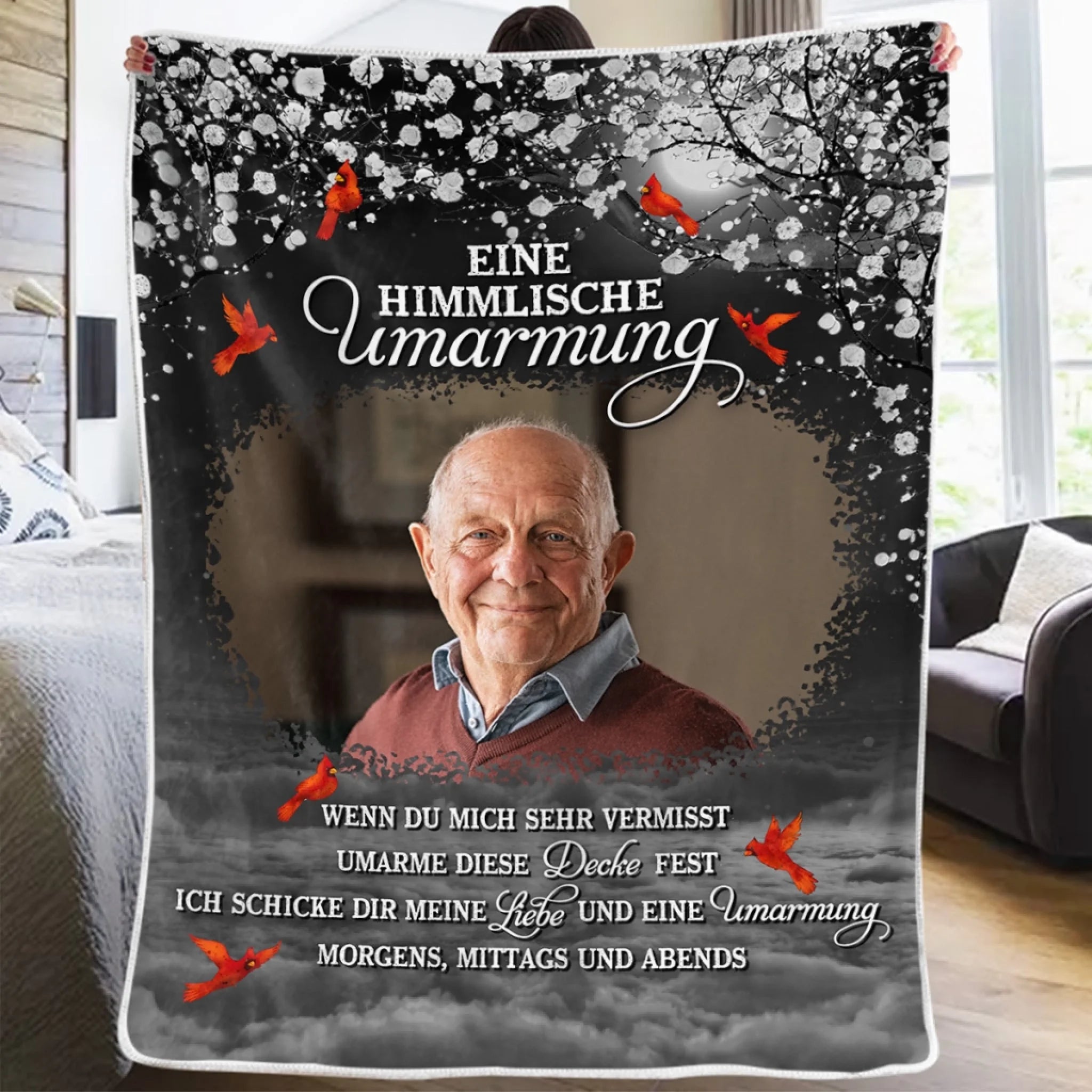 Personalisierte Kardinal-fotodecke – Gedenk- Und Beileidsgeschenke Zu Weihnachten Für Den Verlust Von Mama, Papa – Immer In Erinnerung, Nie Vergessen