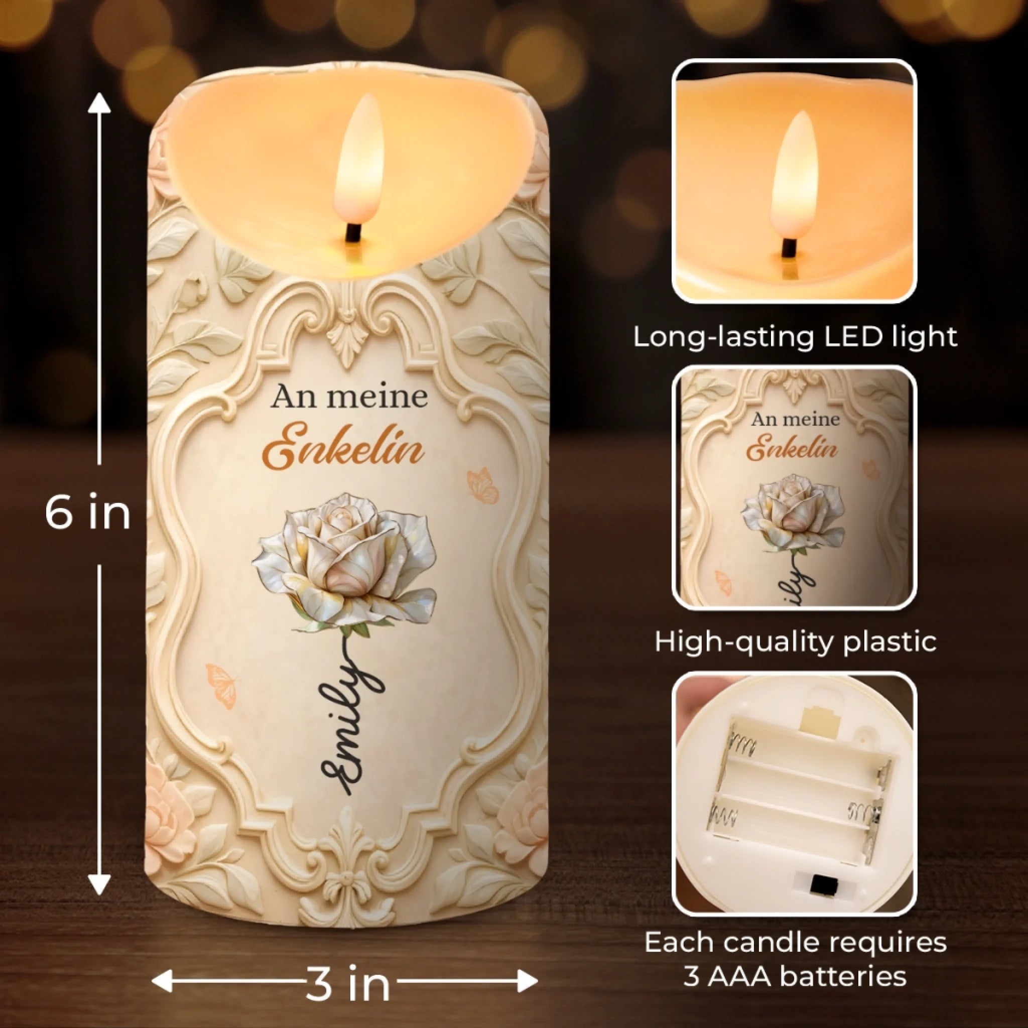 • Material: Hochwertiger Kunststoff mit flackernder LED-Flamme – bringt Wärme und eine bleibende Hommage in Ihr Zuhause