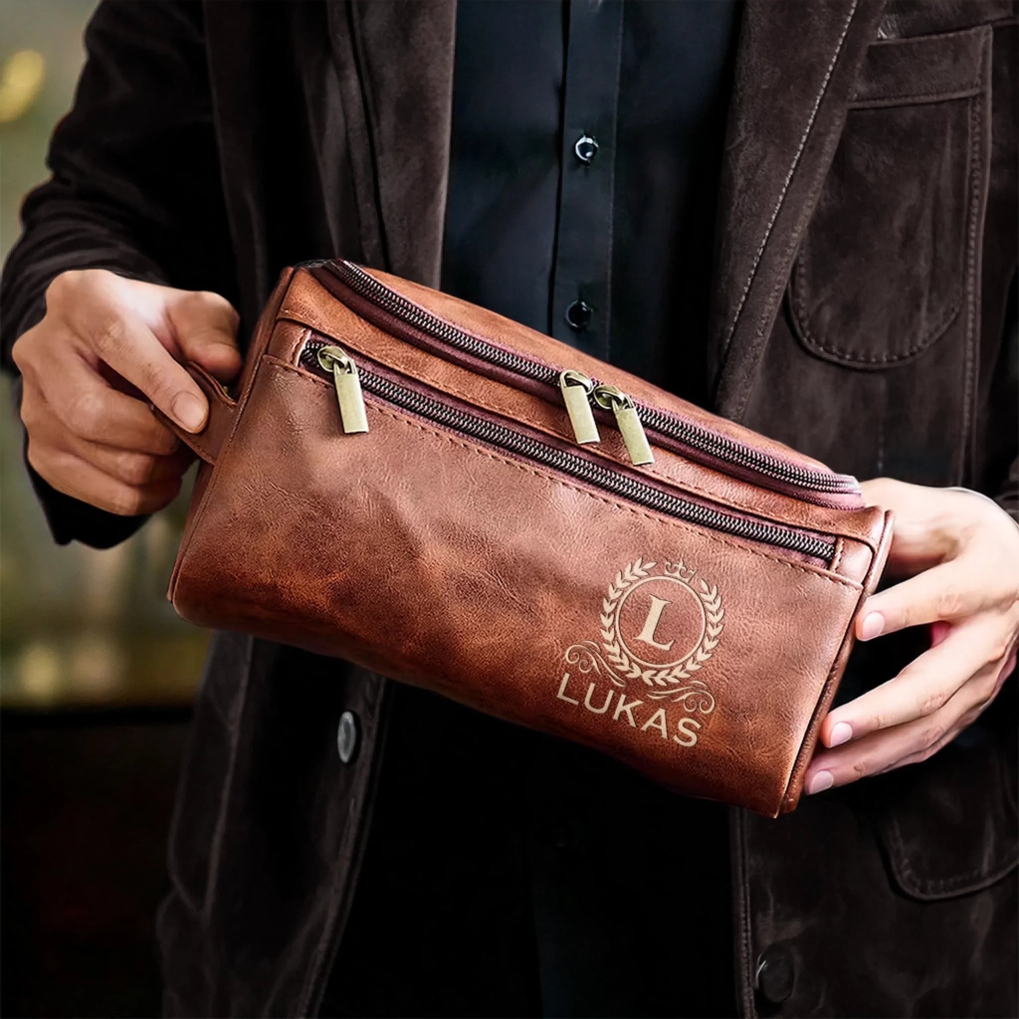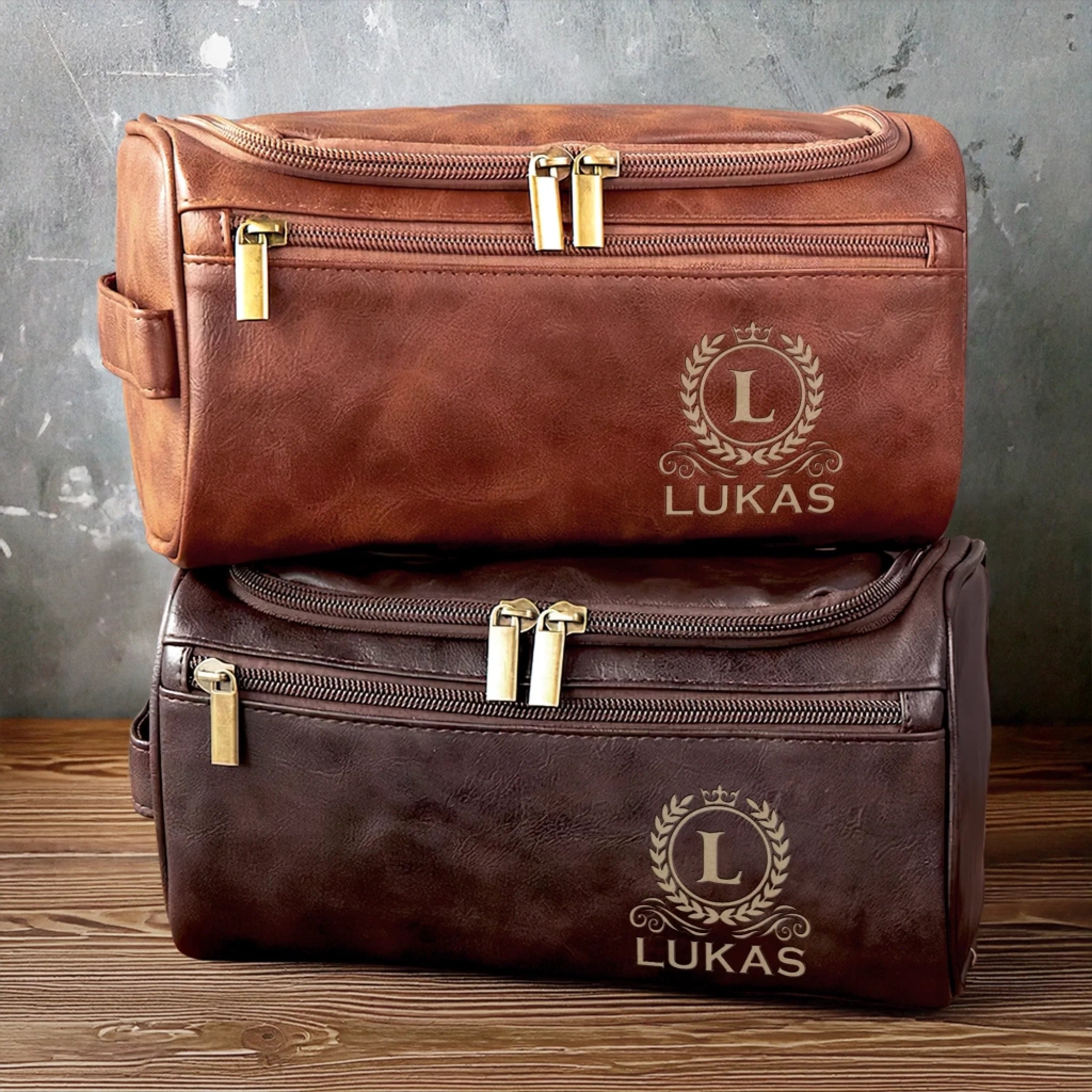 Personalisierte Leder-kulturtasche mit Gravur - Personalisierte Weihnachts- und Geburtstagsgeschenke für Papa, Bruder, Sohn, Ehemann, Trauzeugin, beste Freunde – Ein Zeitloses Geschenk