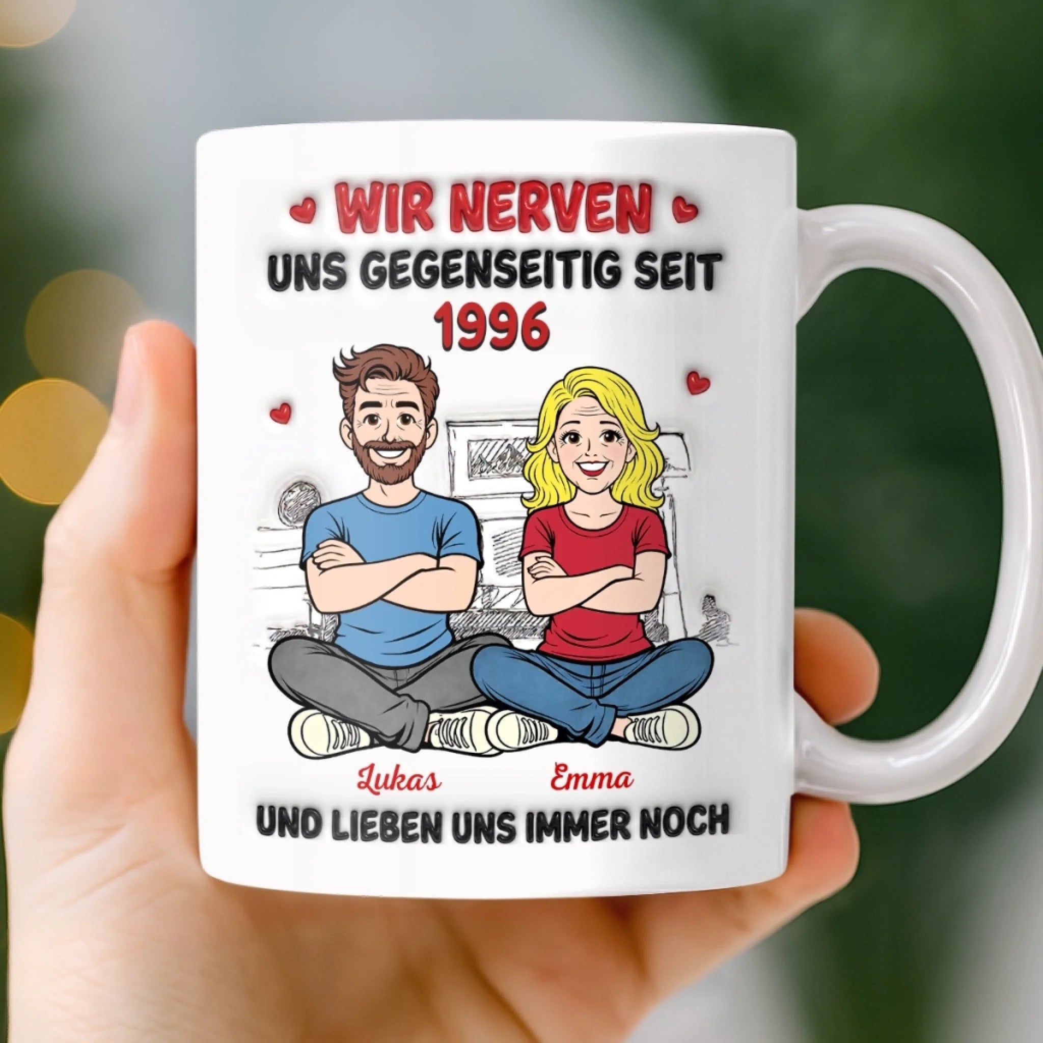 Schenken Sie eine bleibende Erinnerung. Diese personalisierte Tasse von hoher Qualität ist der ideale Begleiter für einen gemütlichen Kaffee, Tee oder eine heiße Schokolade und feiert gleichzeitig Ihre kostbarsten Momente.