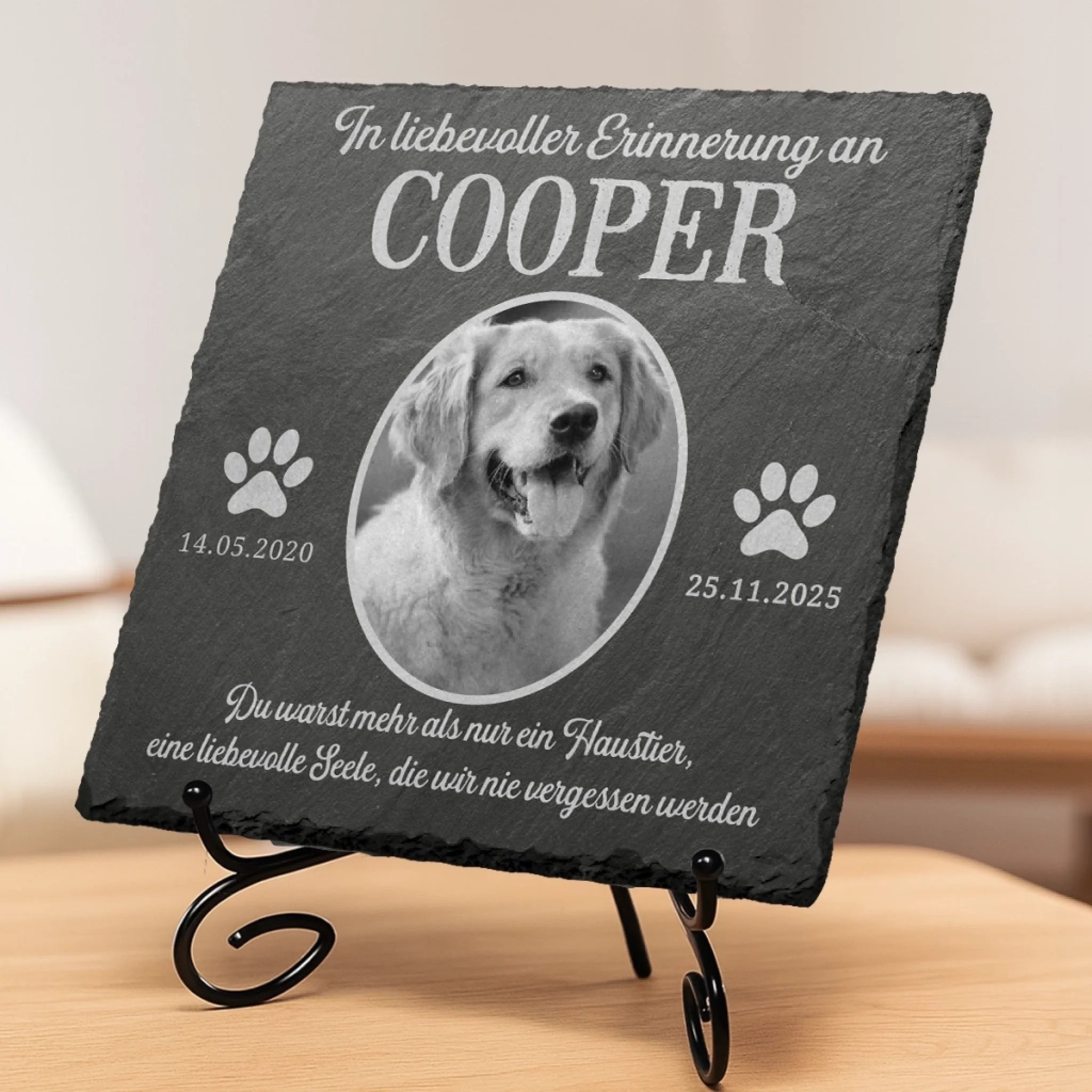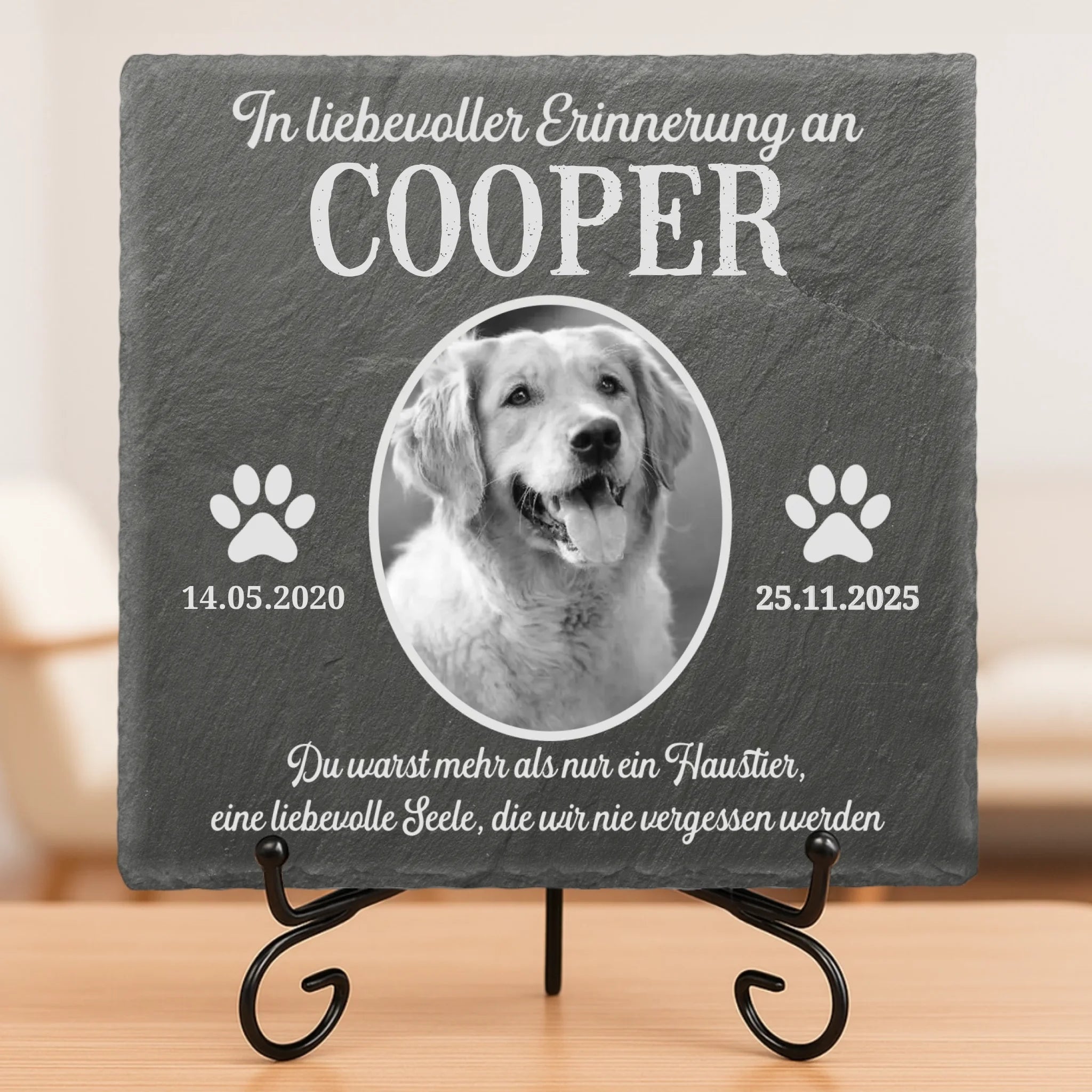 Personalisierter quadratischer Stein mit Ständern und Foto – Tiergedenkgeschenk für Haustierbesitzer – In liebevoller Erinnerung