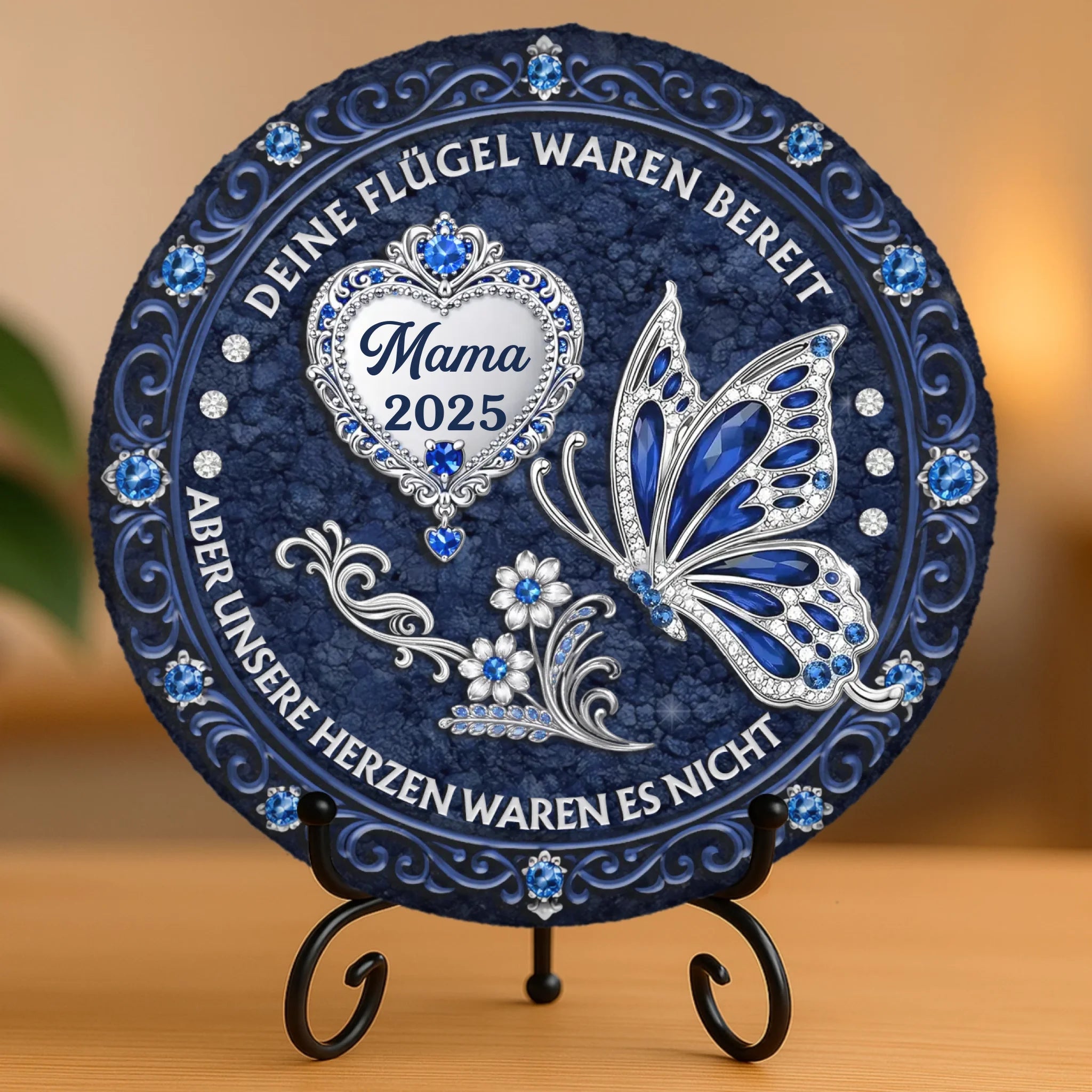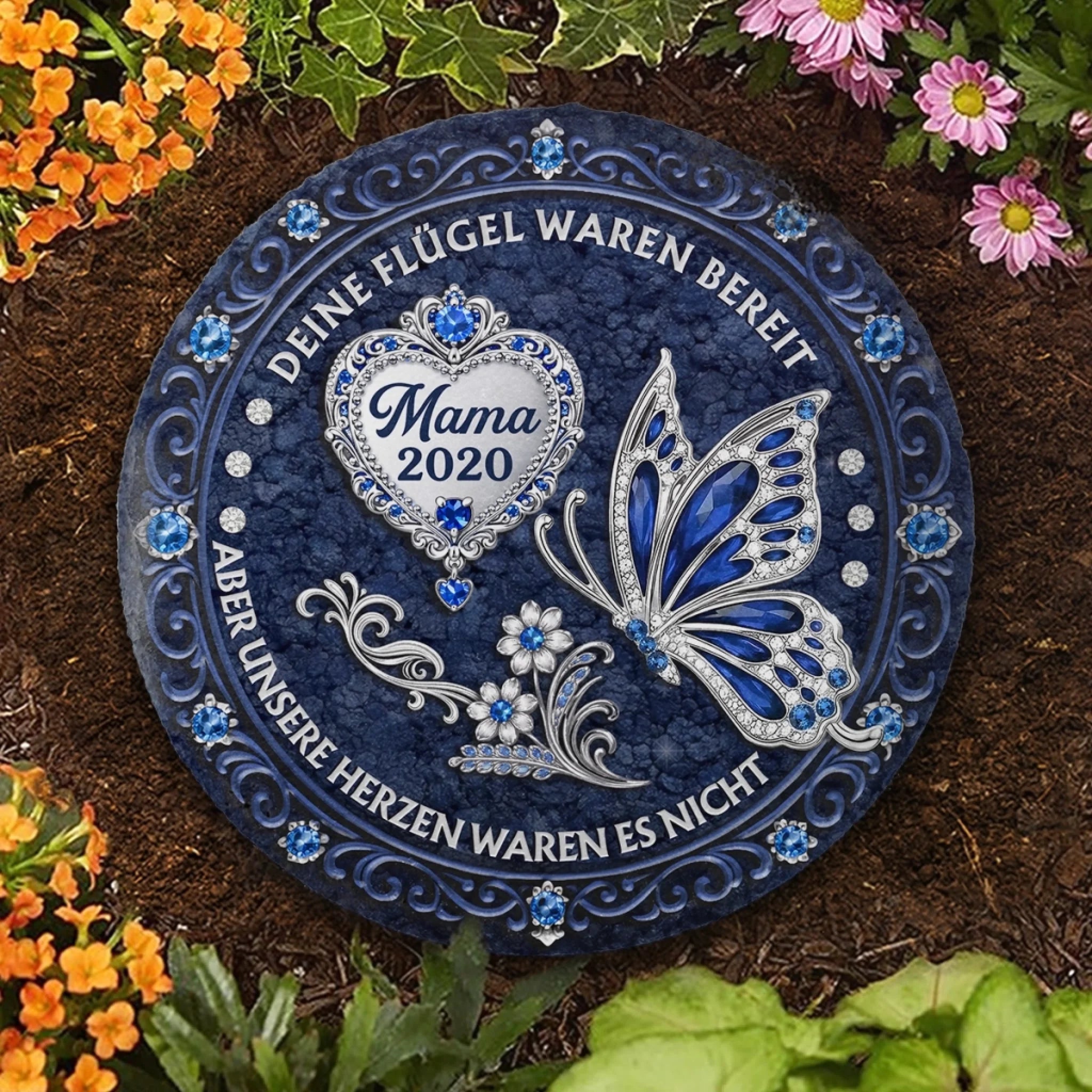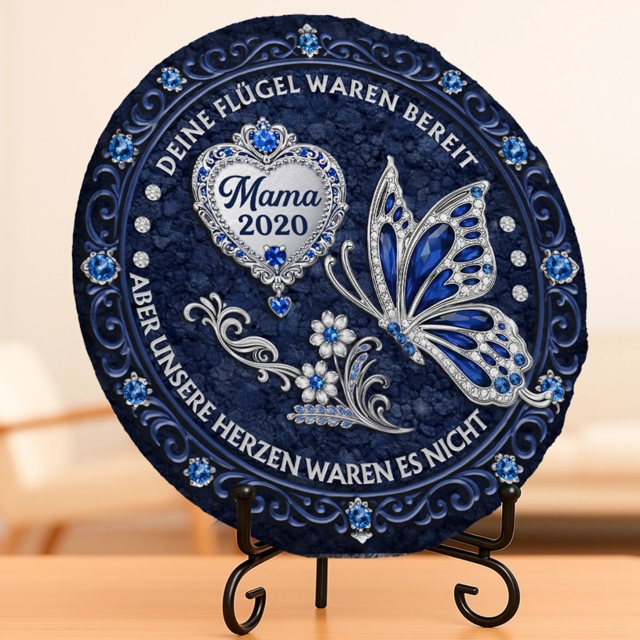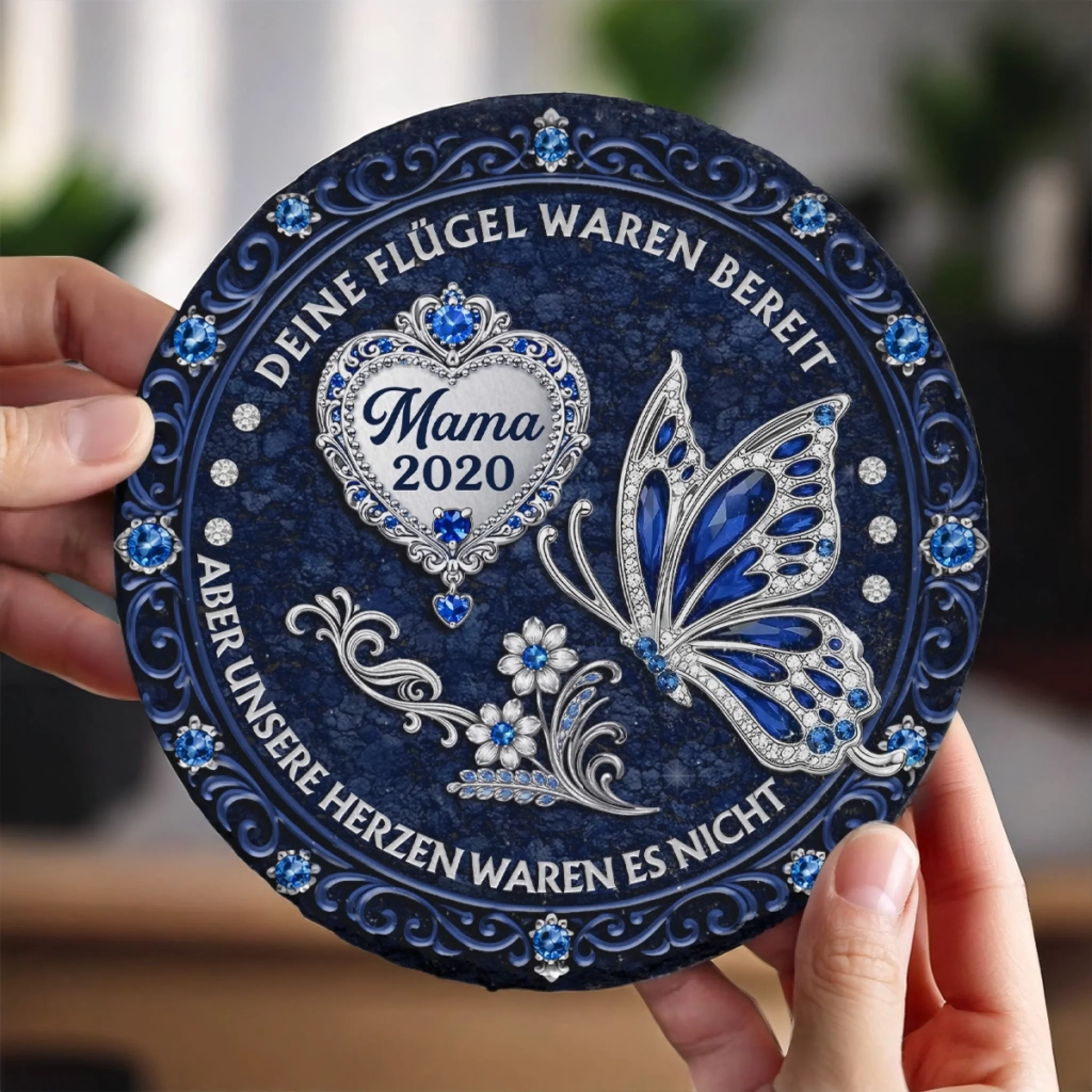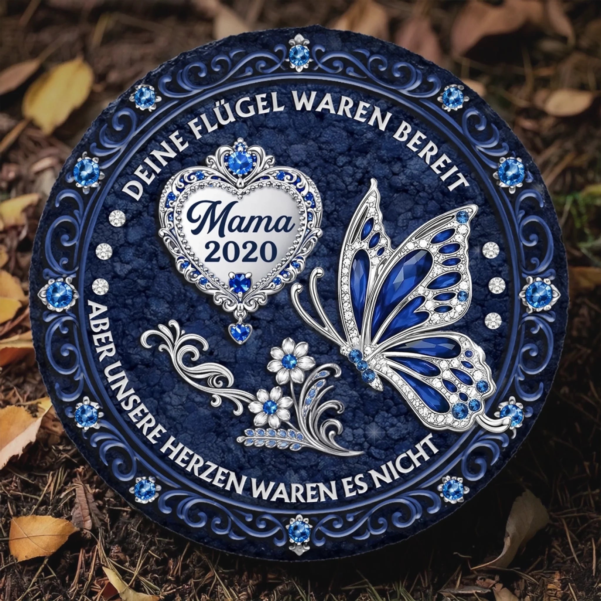 Personalisierter runder Stein mit Ständern – Gedenken an Verstorbene | Erinnerung an Mama, Papa – Unsere Herzen waren es nicht