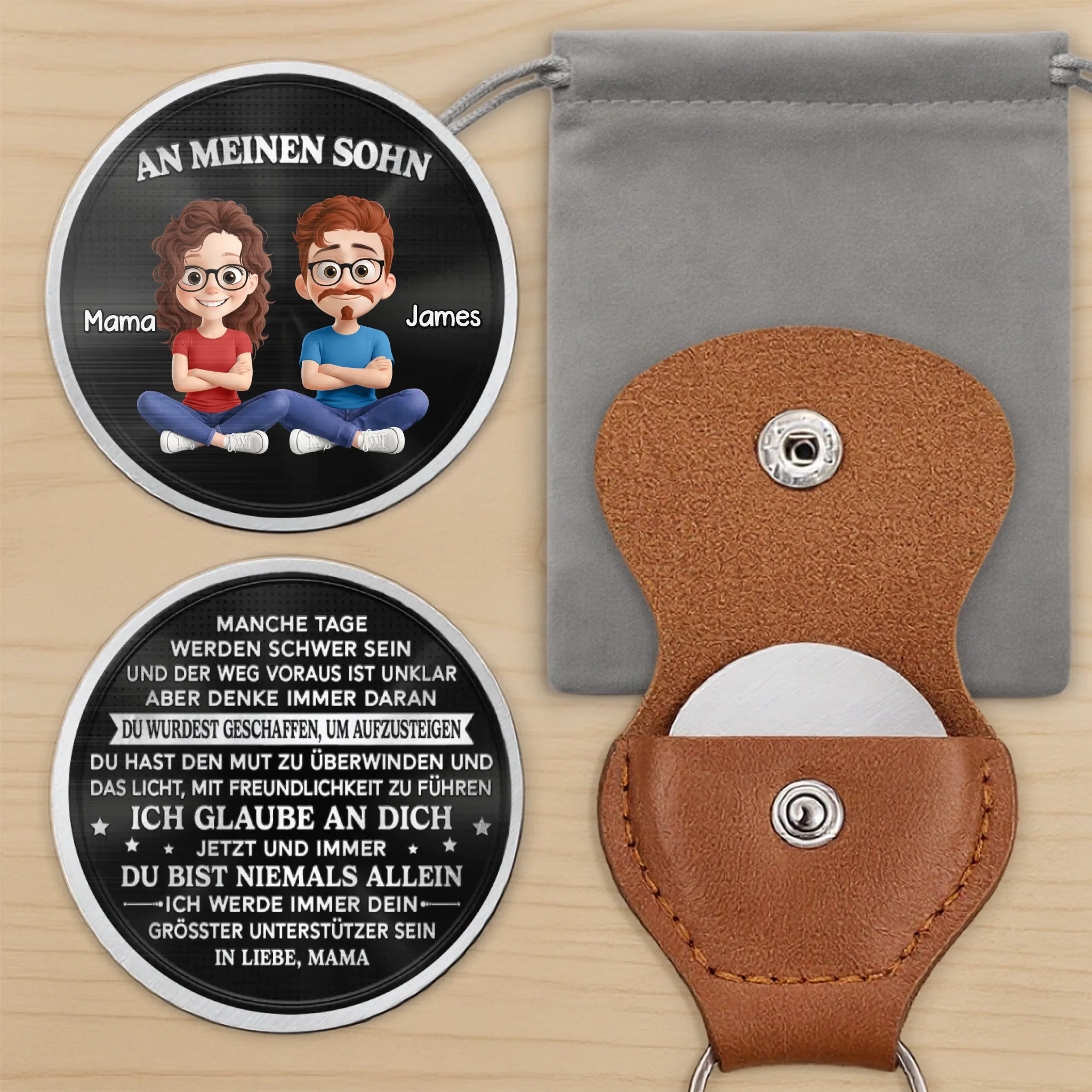 Dieser personalisierte Pocket-Hug-Token ist ein kleines, bedeutungsvolles Accessoire, das Liebe, Trost und Verbundenheit symbolisiert. Entworfen, um Funktionalität mit persönlichem Stil zu verbinden, dient er als greifbare Erinnerung an Fürsorge und Unterstützung und spendet emotionale Geborgenheit, wenn man ihn bei sich trägt. Das perfekte Geschenk für jeden Anlass: Geburtstage, Feiertage, Jahrestage, Abschlussfeiern, Valentinstag, Muttertag, Vatertag oder einfach so! Ob für Freunde, Familie oder die besondere Person – dieses vielseitige Geschenk bringt garantiert Freude und schafft bleibende Erinnerungen.