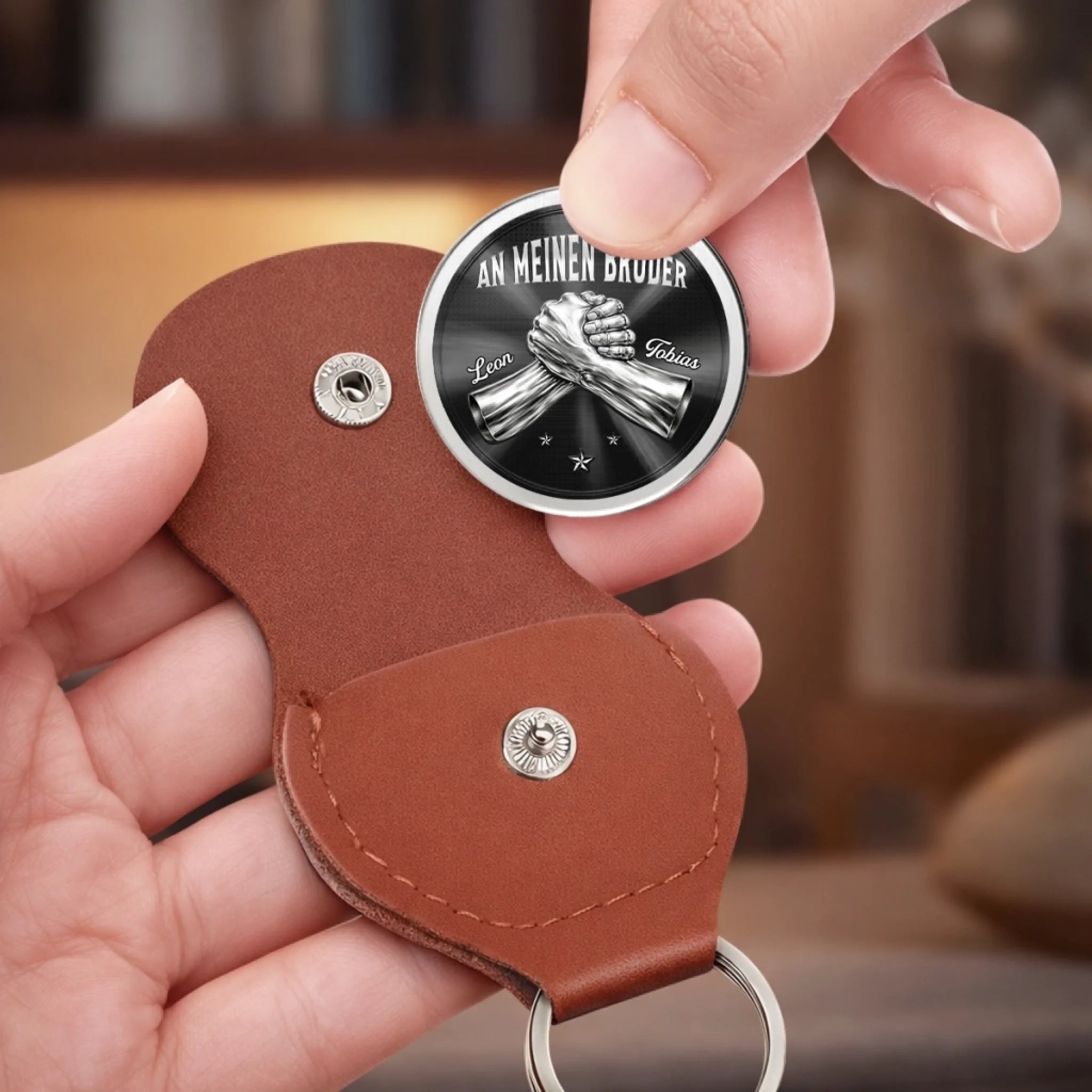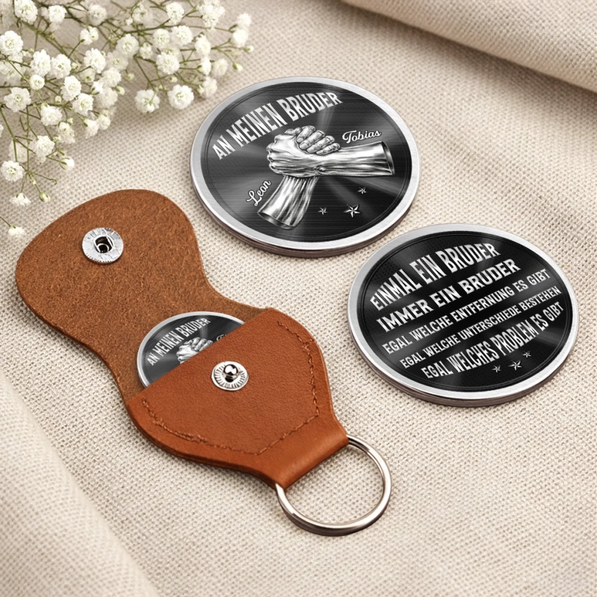 Dieser personalisierte Pocket-Hug-Token ist ein kleines, bedeutungsvolles Accessoire, das Liebe, Trost und Verbundenheit symbolisiert. Entworfen, um Funktionalität mit persönlichem Stil zu verbinden, dient er als greifbare Erinnerung an Fürsorge und Unterstützung und spendet emotionale Geborgenheit, wenn man ihn bei sich trägt. Das perfekte Geschenk für jeden Anlass: Geburtstage, Feiertage, Jahrestage, Abschlussfeiern, Valentinstag, Muttertag, Vatertag oder einfach so! Ob für Freunde, Familie oder die besondere Person – dieses vielseitige Geschenk bringt garantiert Freude und schafft bleibende Erinnerungen.