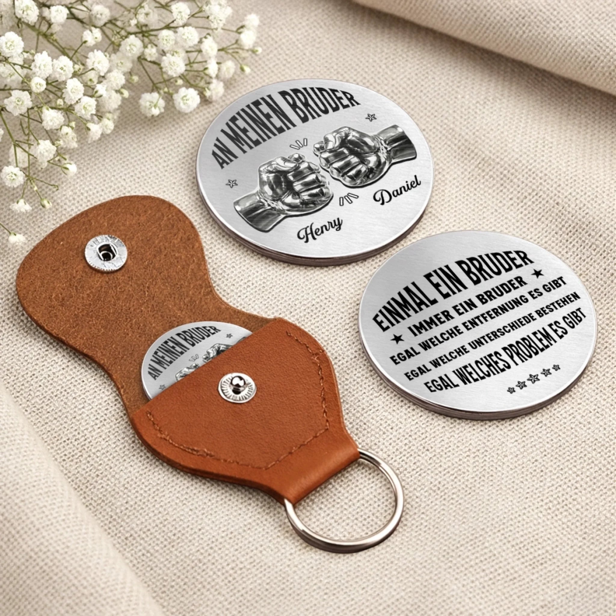 Dieser personalisierte Pocket-Hug-Token ist ein kleines, bedeutungsvolles Accessoire, das Liebe, Trost und Verbundenheit symbolisiert. Entworfen, um Funktionalität mit persönlichem Stil zu verbinden, dient er als greifbare Erinnerung an Fürsorge und Unterstützung und spendet emotionale Geborgenheit, wenn man ihn bei sich trägt. Das perfekte Geschenk für jeden Anlass: Geburtstage, Feiertage, Jahrestage, Abschlussfeiern, Valentinstag, Muttertag, Vatertag oder einfach so! Ob für Freunde, Familie oder die besondere Person – dieses vielseitige Geschenk bringt garantiert Freude und schafft bleibende Erinnerungen.