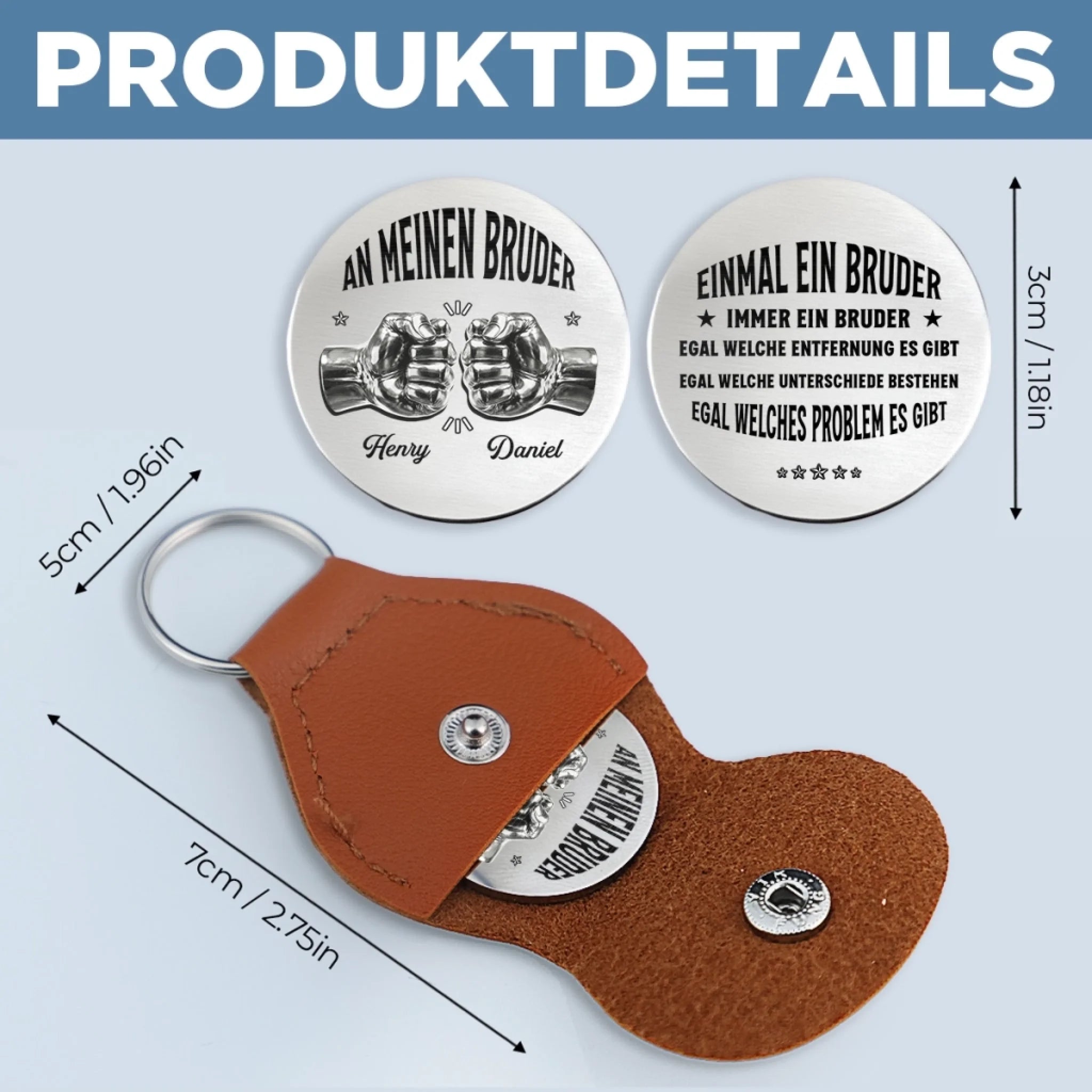 • Verpackung: Edelstahl-Token und PU-Leder-Hülle enthalten