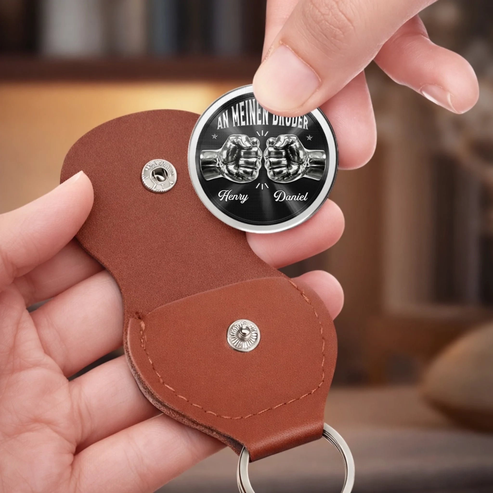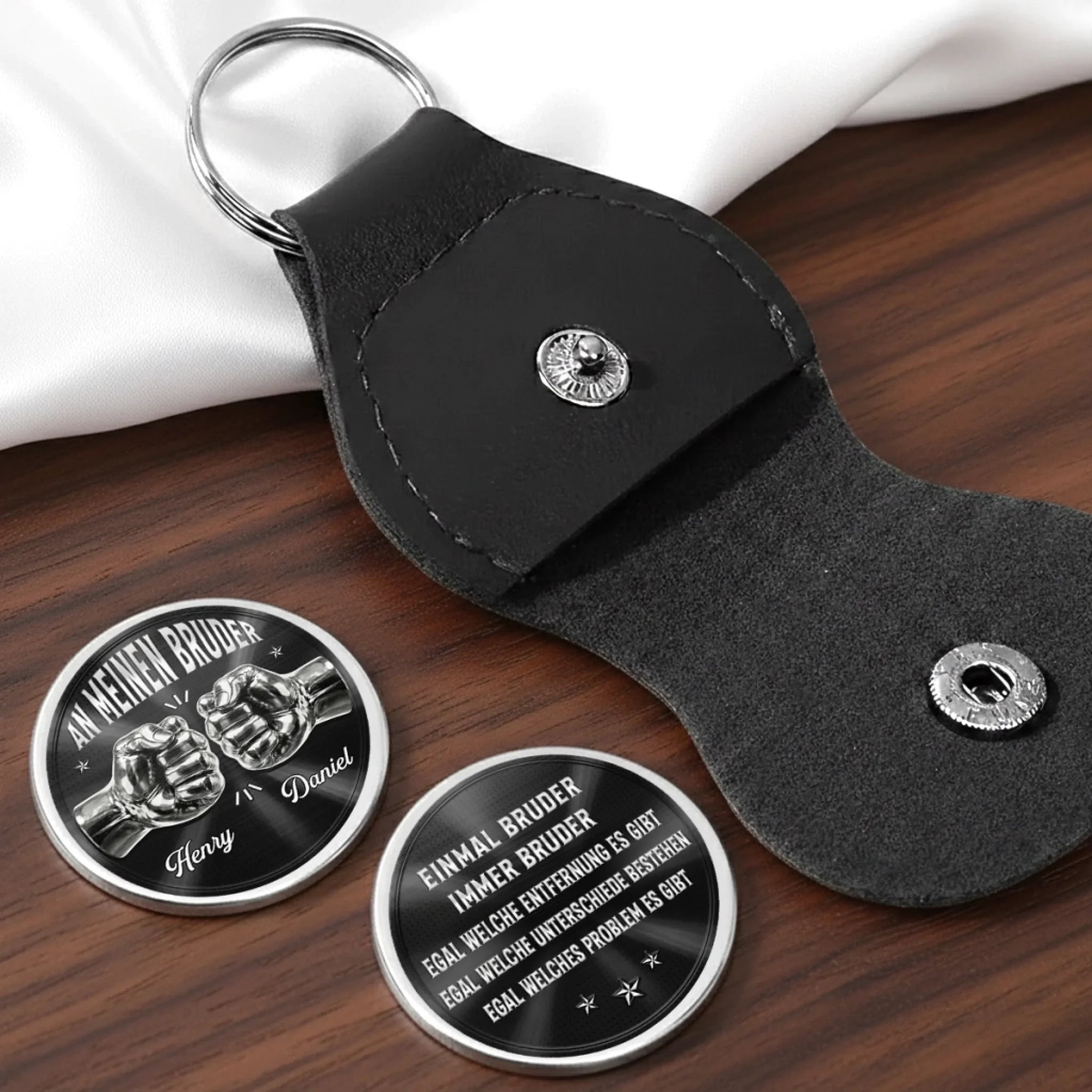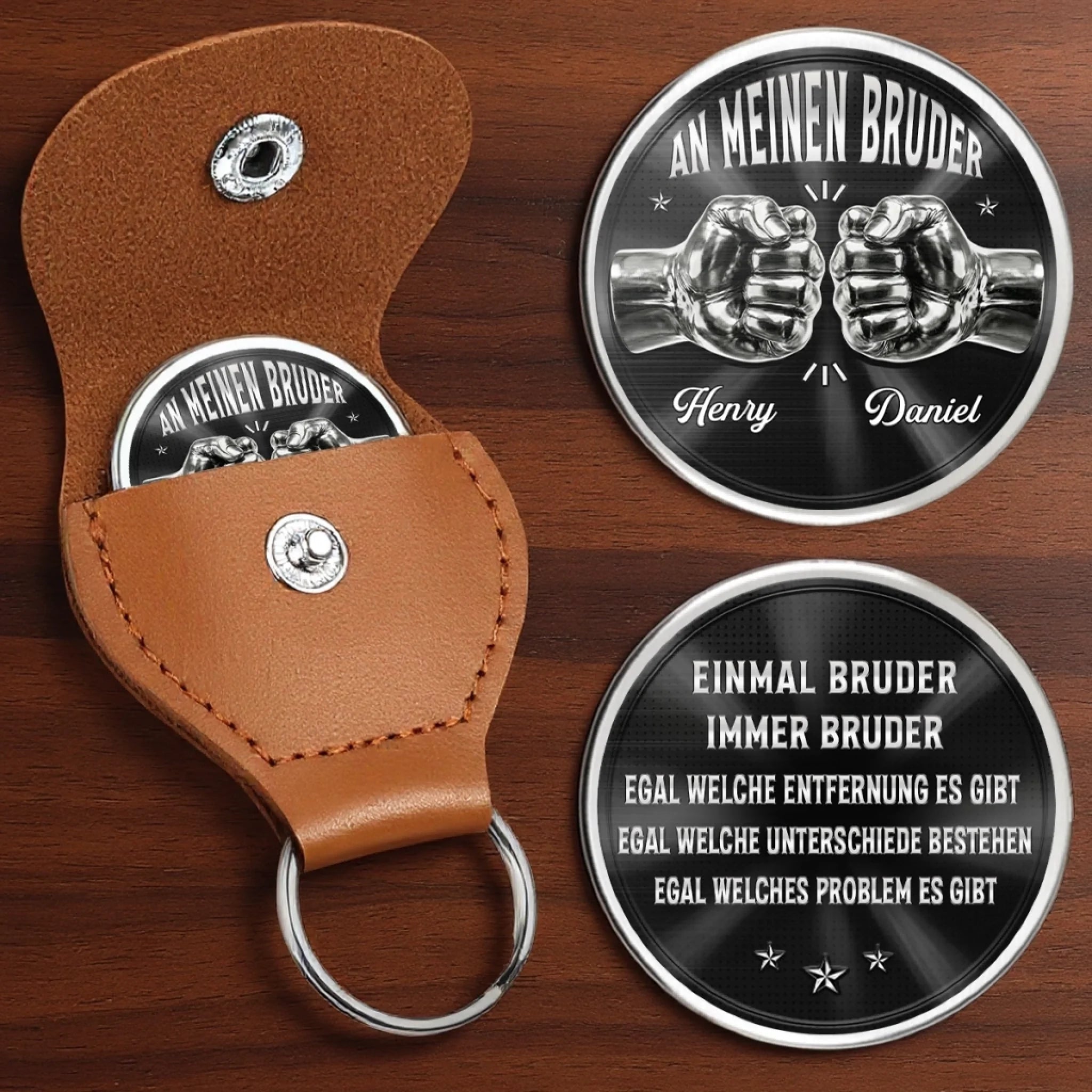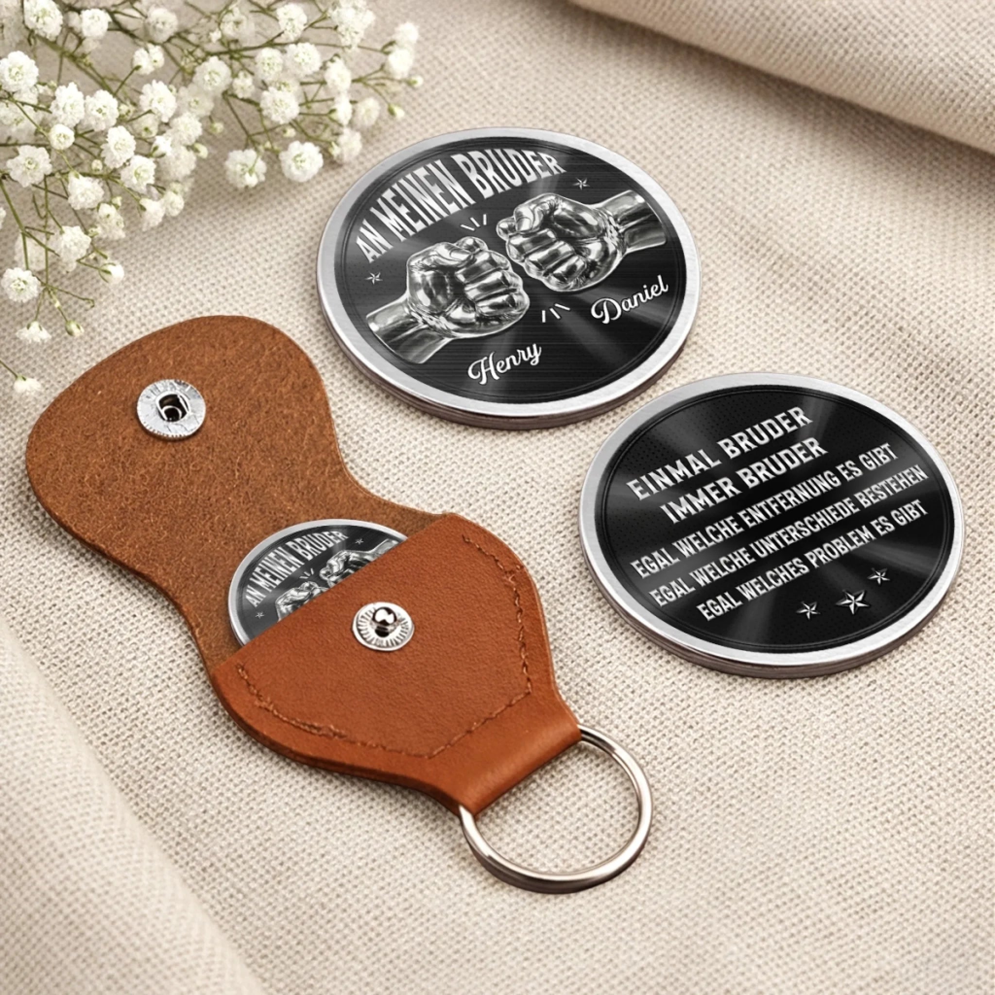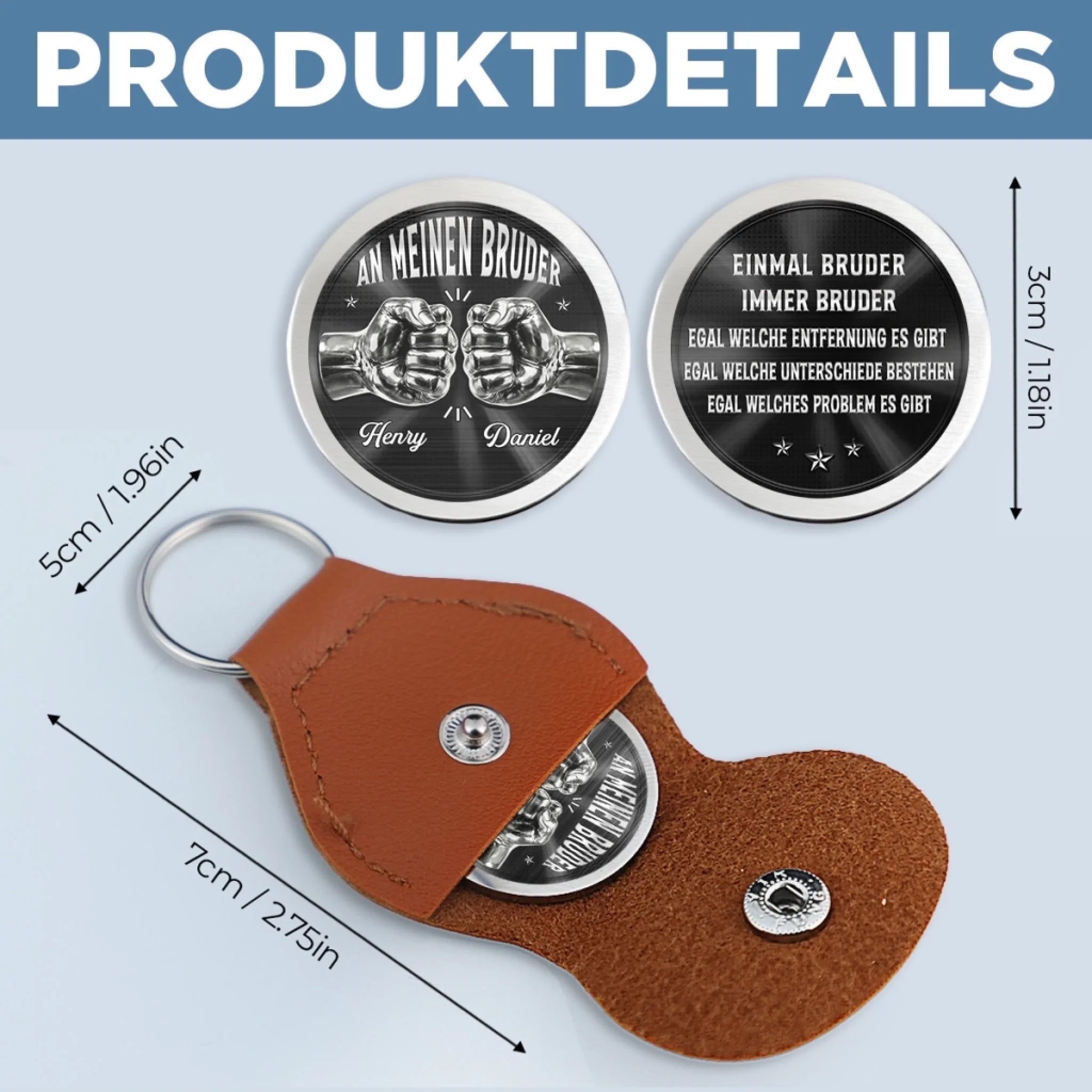• Verpackung: Edelstahl-Token und PU-Leder-Hülle enthalten