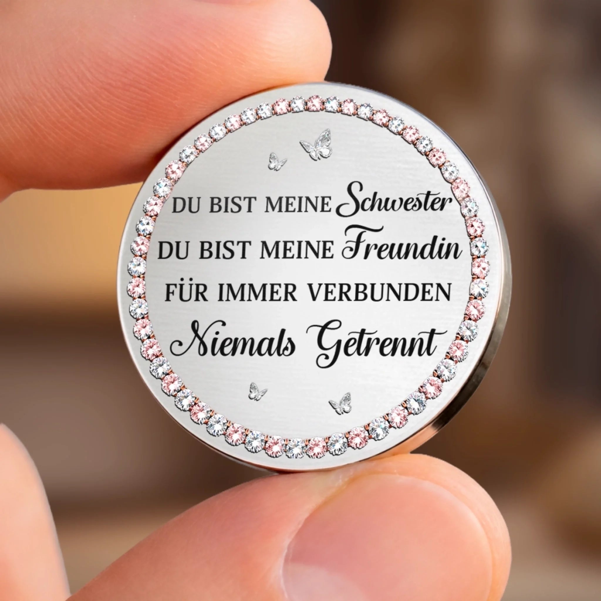 Dieser personalisierte Pocket-Hug-Token ist ein kleines, bedeutungsvolles Accessoire, das Liebe, Trost und Verbundenheit symbolisiert. Entworfen, um Funktionalität mit persönlichem Stil zu verbinden, dient er als greifbare Erinnerung an Fürsorge und Unterstützung und spendet emotionale Geborgenheit, wenn man ihn bei sich trägt. Das perfekte Geschenk für jeden Anlass: Geburtstage, Feiertage, Jahrestage, Abschlussfeiern, Valentinstag, Muttertag, Vatertag oder einfach so! Ob für Freunde, Familie oder die besondere Person – dieses vielseitige Geschenk bringt garantiert Freude und schafft bleibende Erinnerungen.