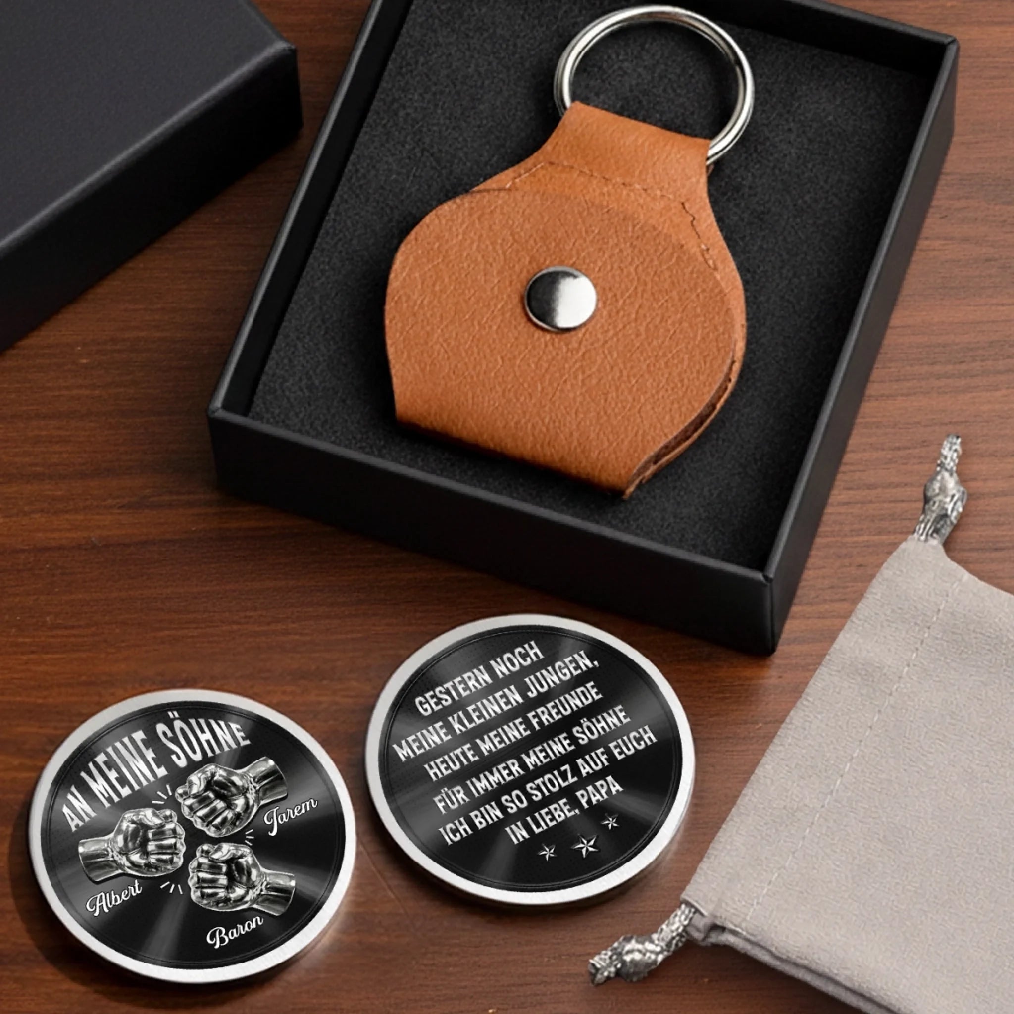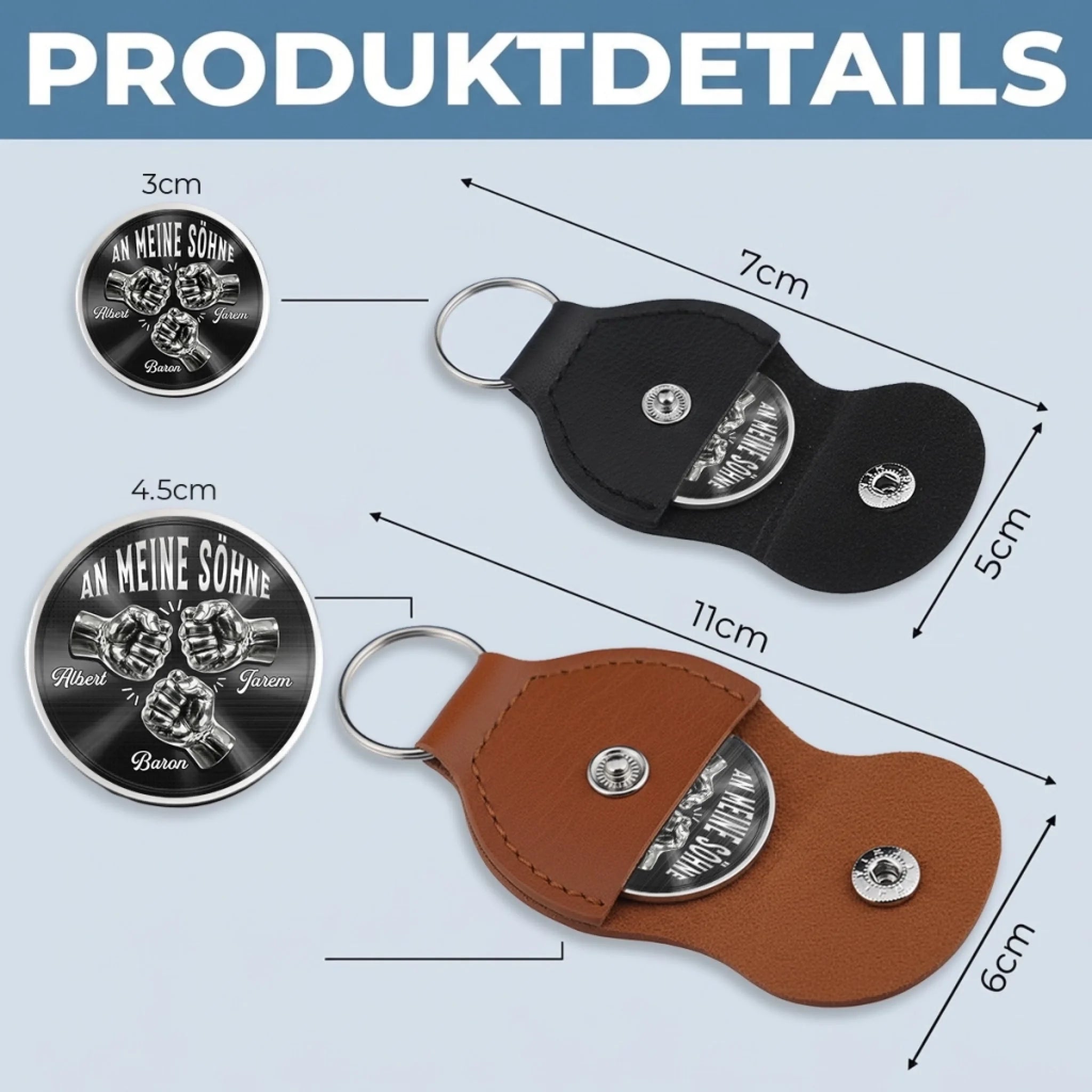 Verpackung: Edelstahl-Token und PU-Leder-Hülle enthalten
