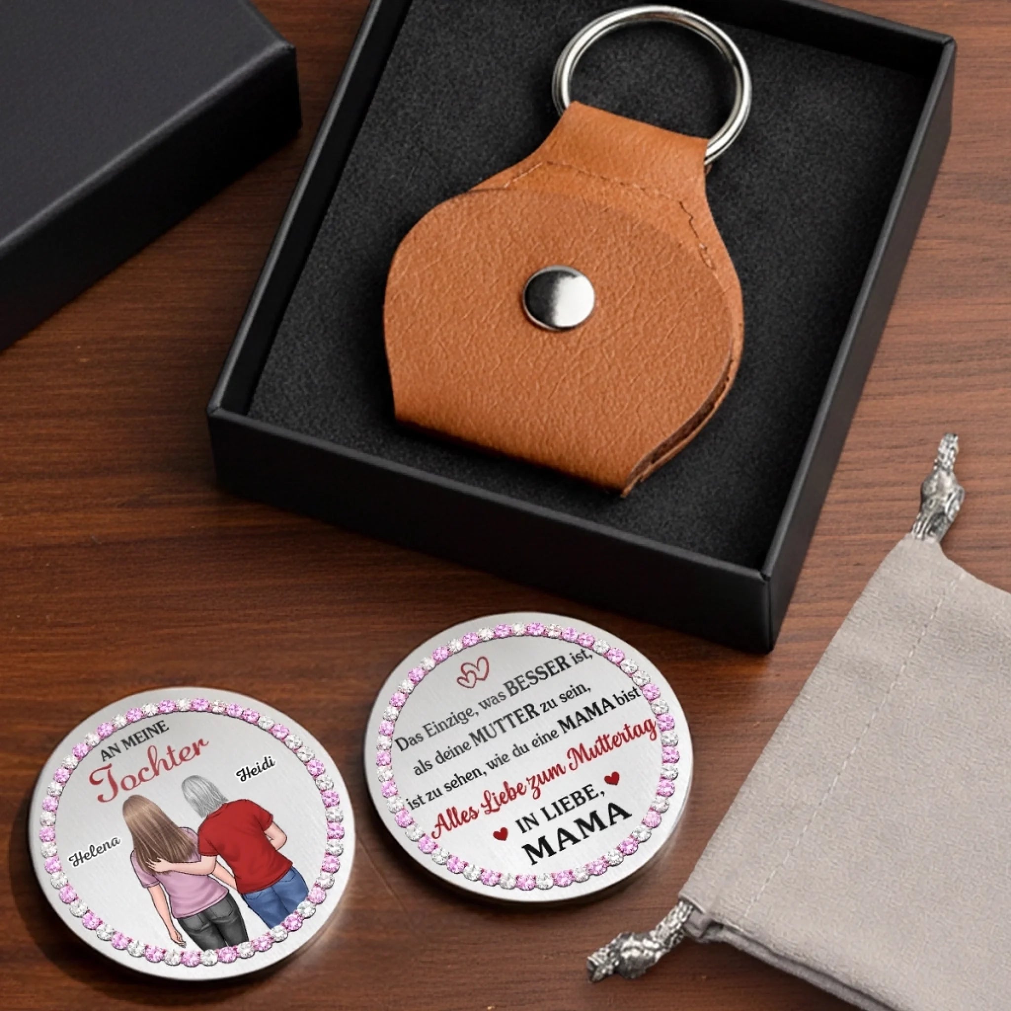 Dieser personalisierte Pocket-Hug-Token ist ein kleines, bedeutungsvolles Accessoire, das Liebe, Trost und Verbundenheit symbolisiert. Entworfen, um Funktionalität mit persönlichem Stil zu verbinden, dient er als greifbare Erinnerung an Fürsorge und Unterstützung und spendet emotionale Geborgenheit, wenn man ihn bei sich trägt. Das perfekte Geschenk für jeden Anlass: Geburtstage, Feiertage, Jahrestage, Abschlussfeiern, Valentinstag, Muttertag, Vatertag oder einfach so! Ob für Freunde, Familie oder die besondere Person – dieses vielseitige Geschenk bringt garantiert Freude und schafft bleibende Erinnerungen.