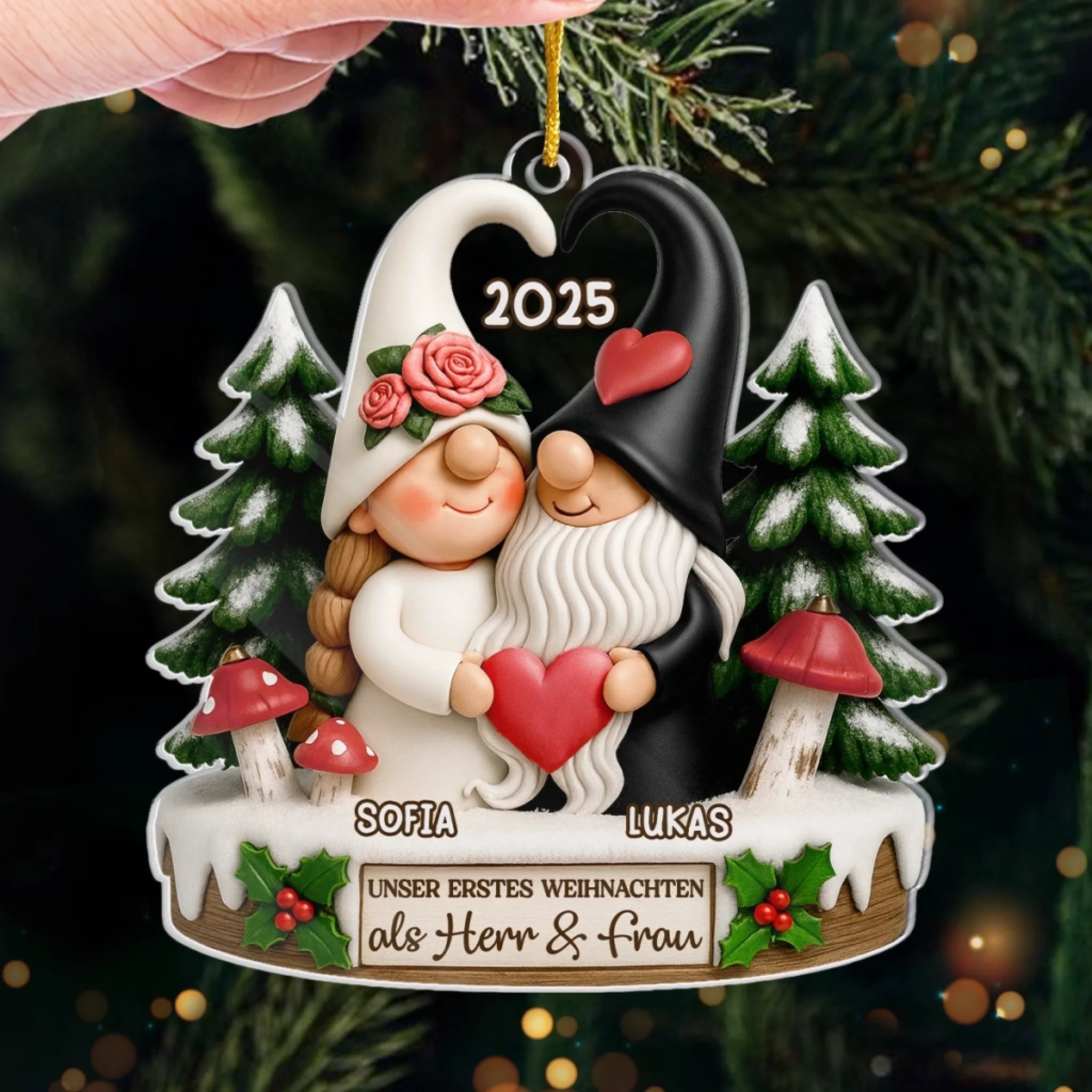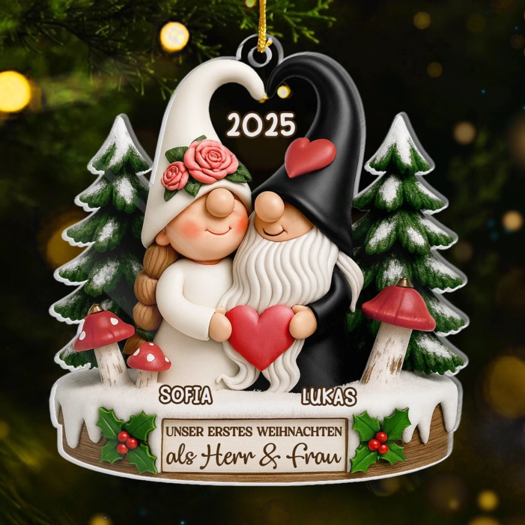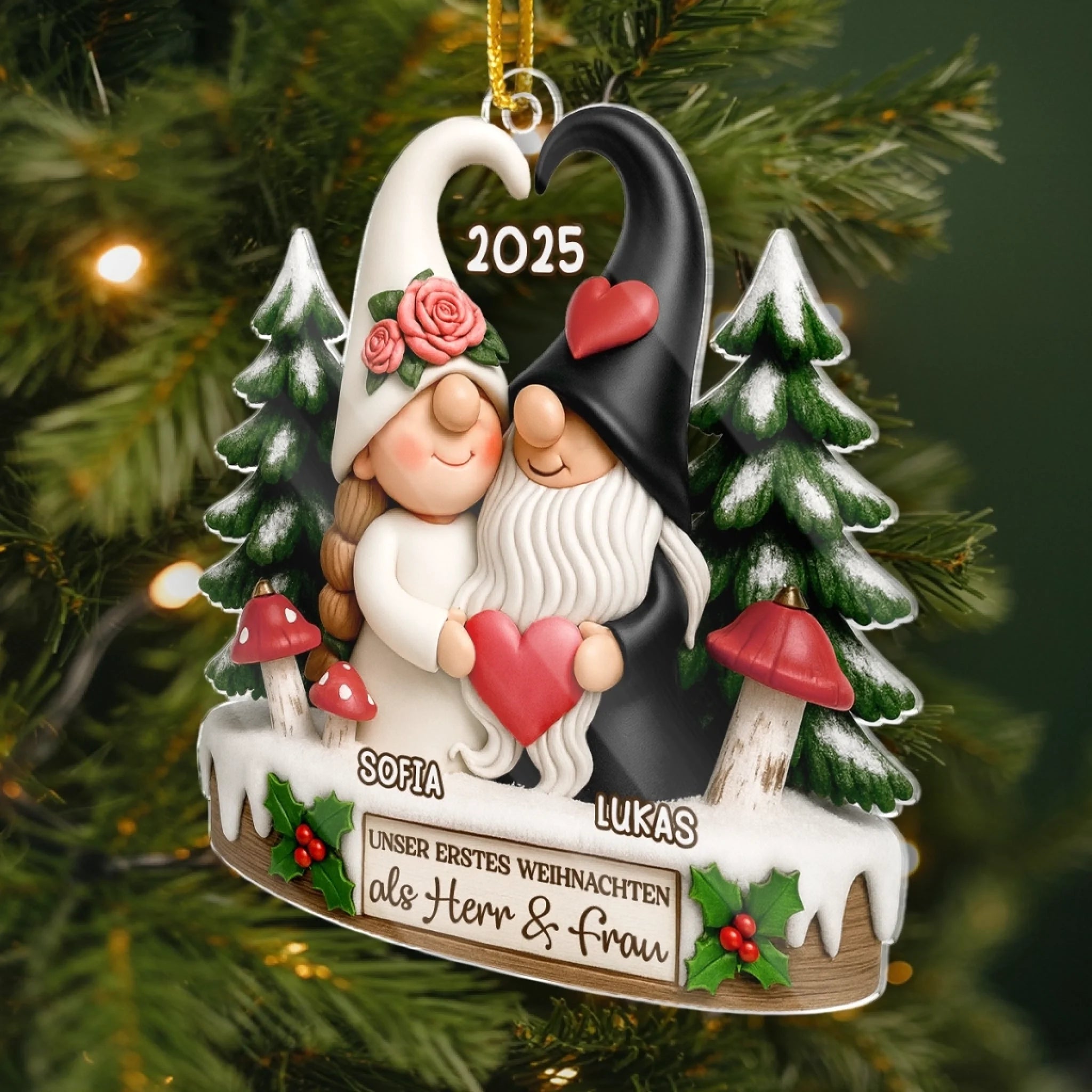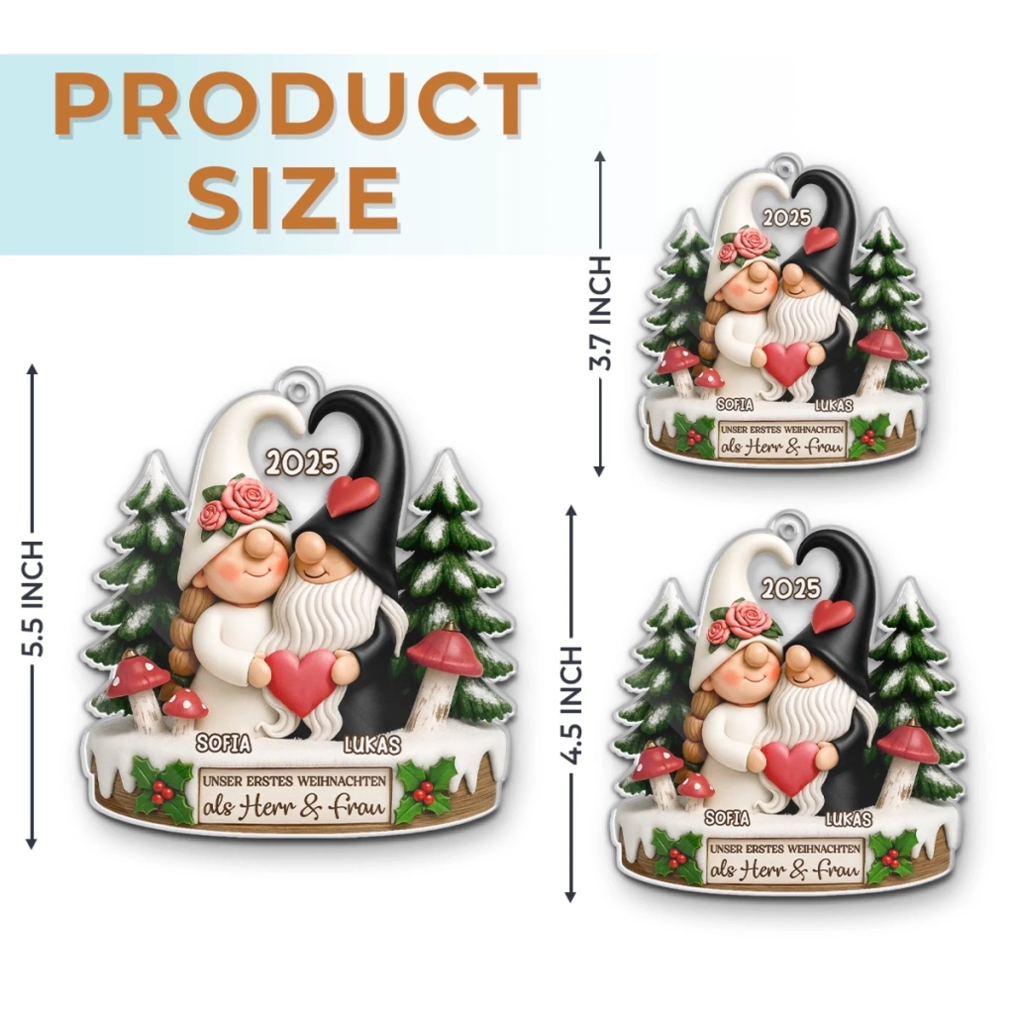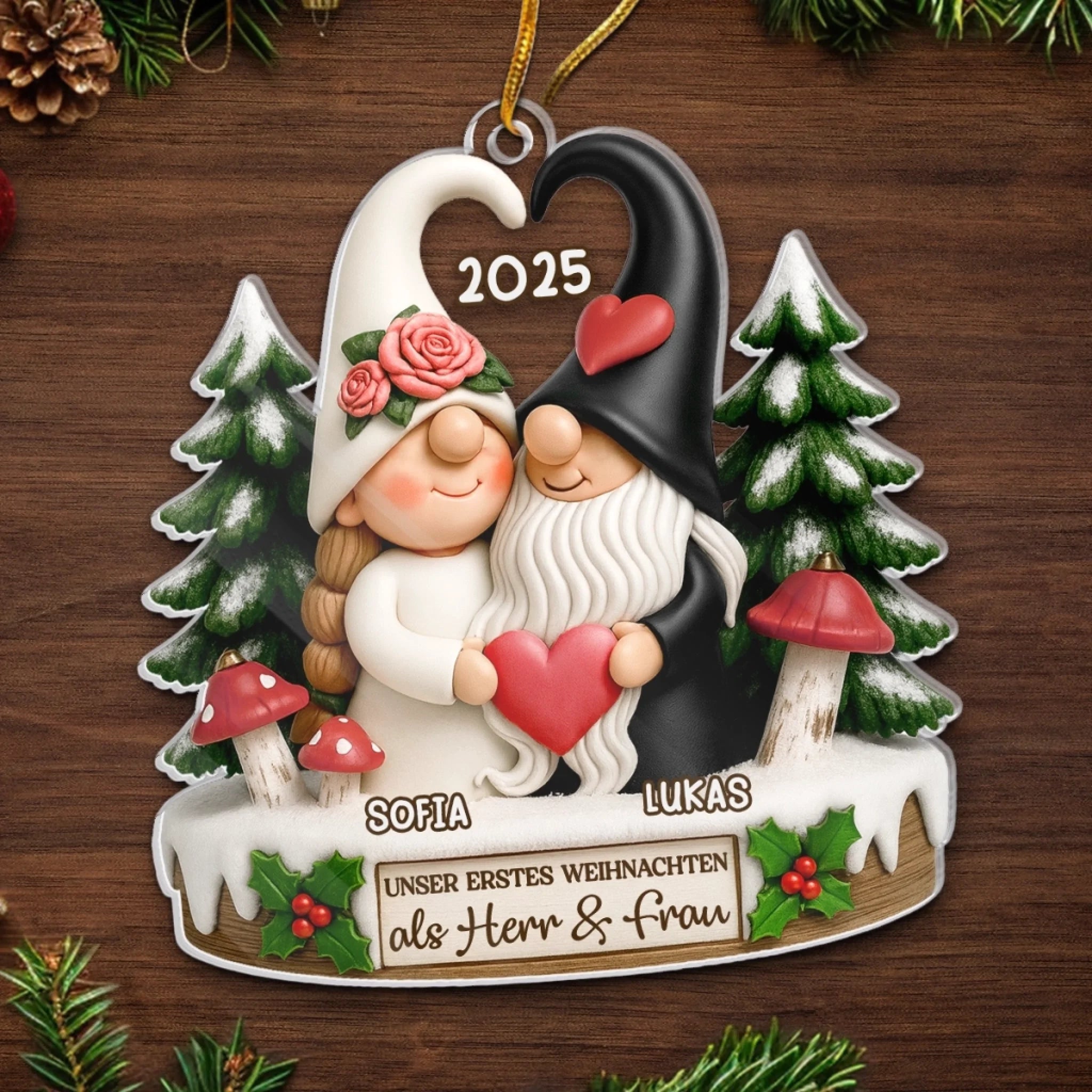 Personalisiertes Acryl-Ornament – Jubiläums-, Weihnachts- & Hochzeitsgeschenke für Ehemann & Ehefrau – Liebe kennt keine Gnome-Grenzen