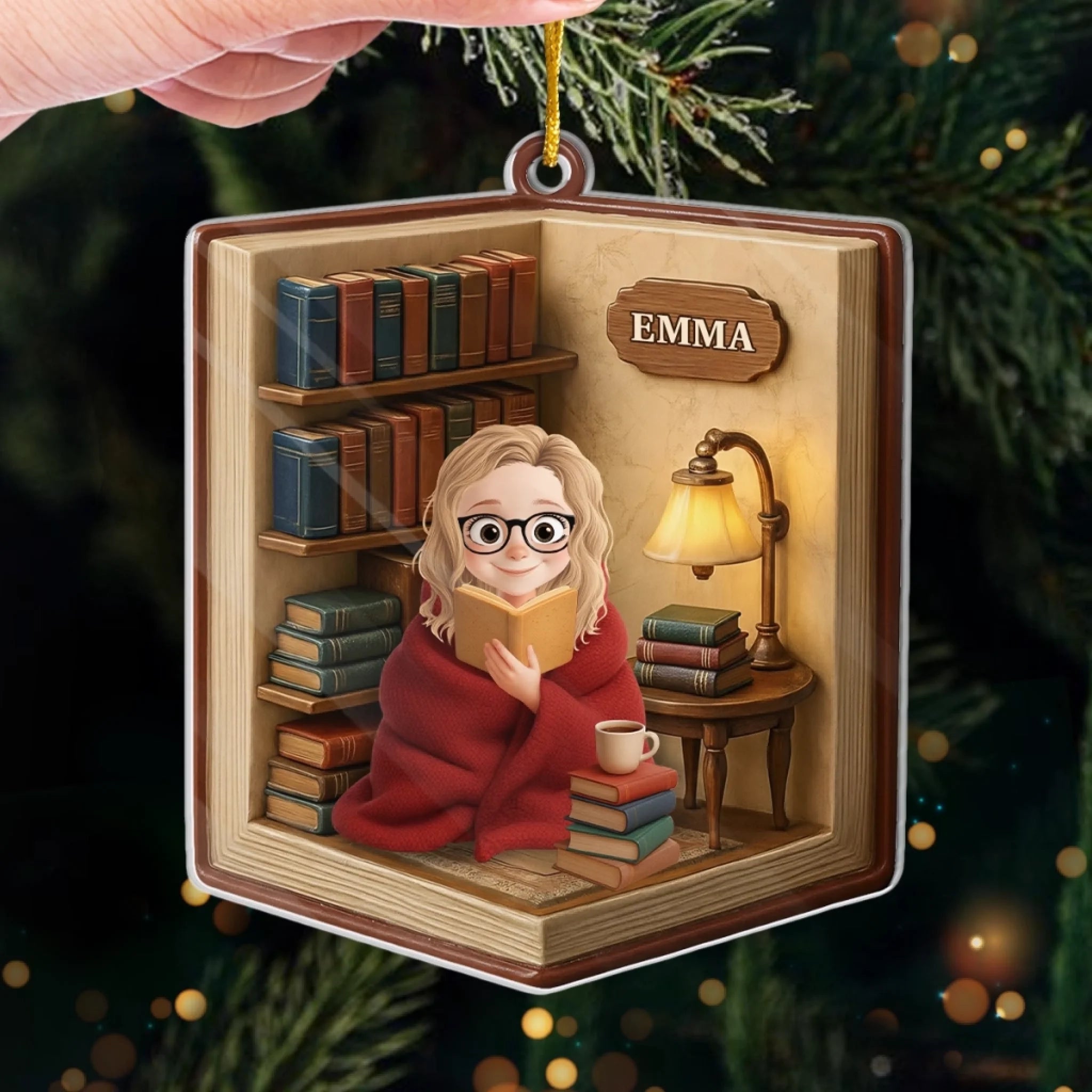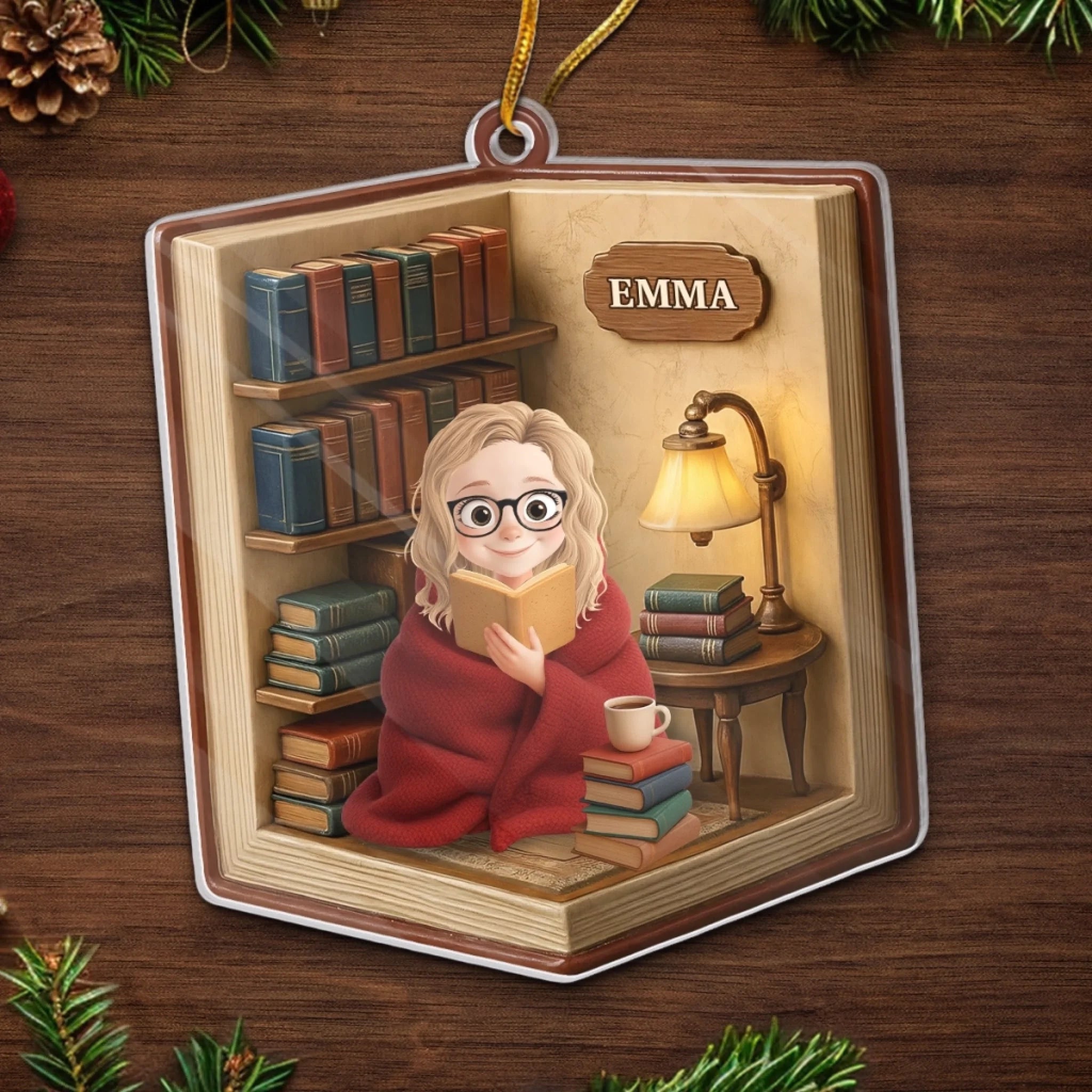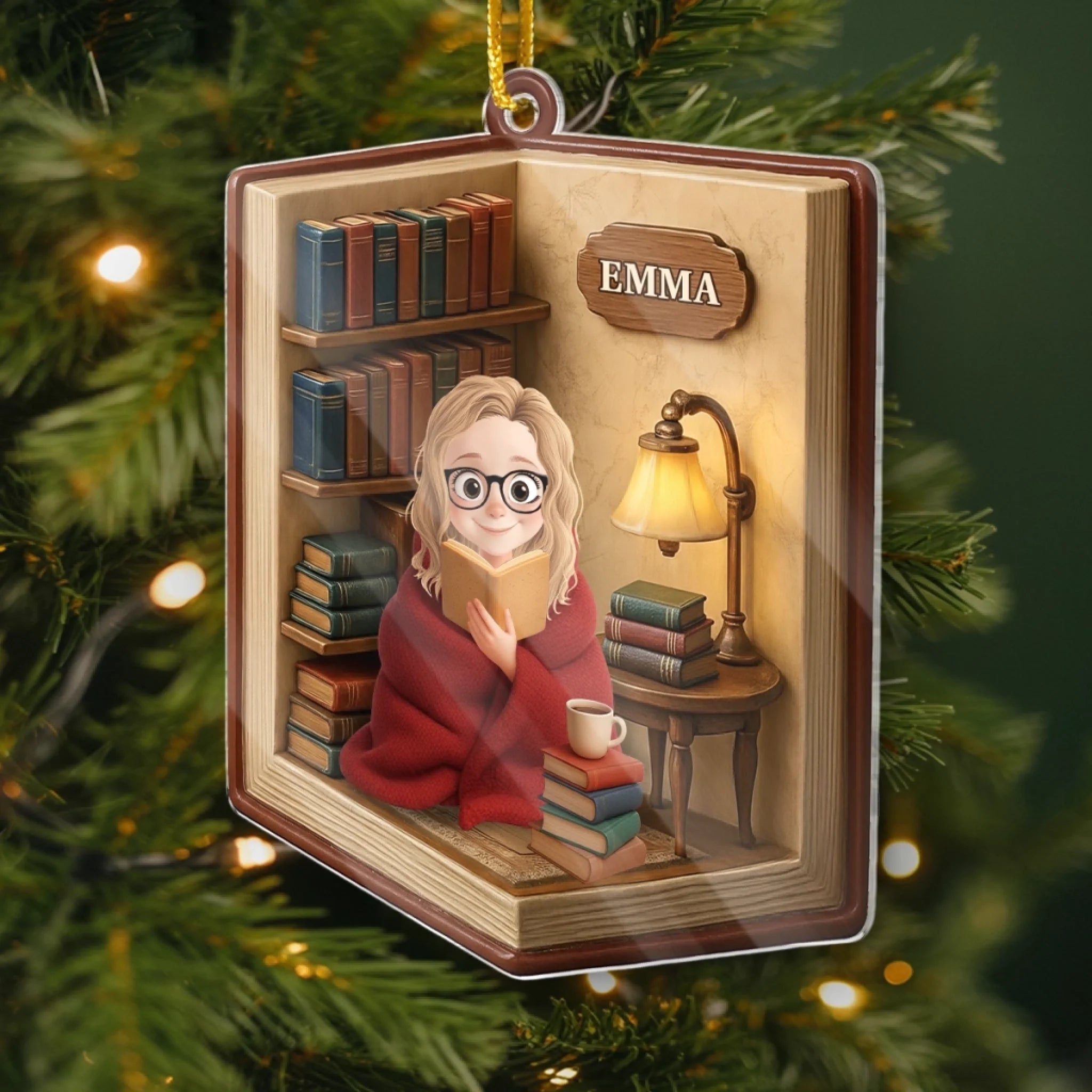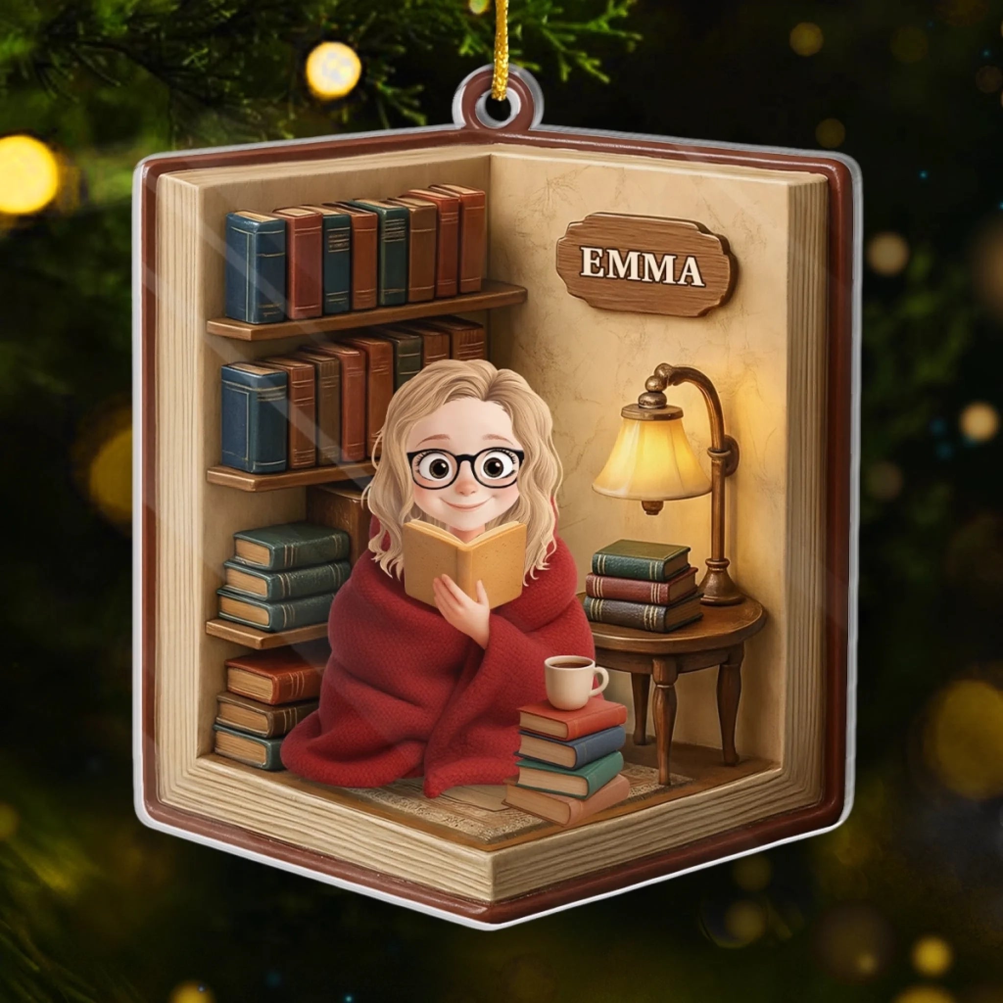 Personalisiertes Acrylornament - Personalisierte Weihnachtsgeschenke Für Buchliebhaber, Bücherwürmer, Leser - Eine Leseecke Aus Träumen