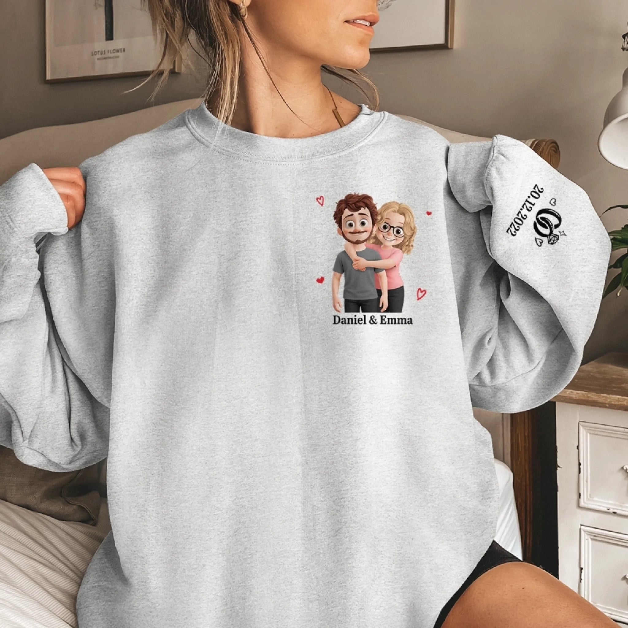 Personalisiertes Unisex-Sweatshirt mit Ärmeldesign – Geschenk für Ehemann/Ehefrau, Jahrestag – Eine Liebevolle Botschaft