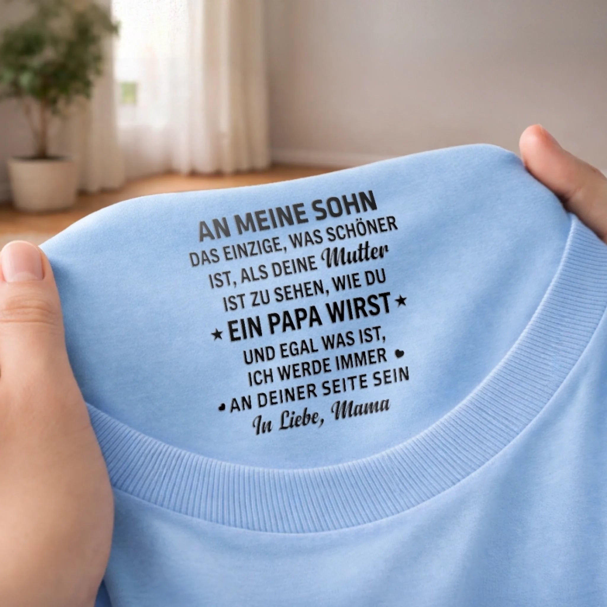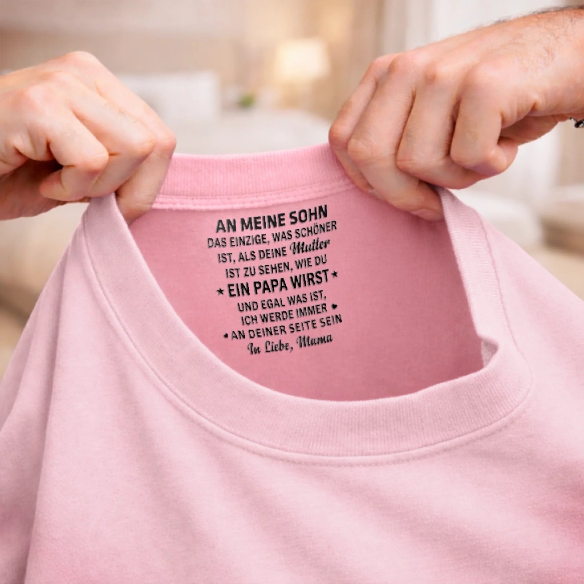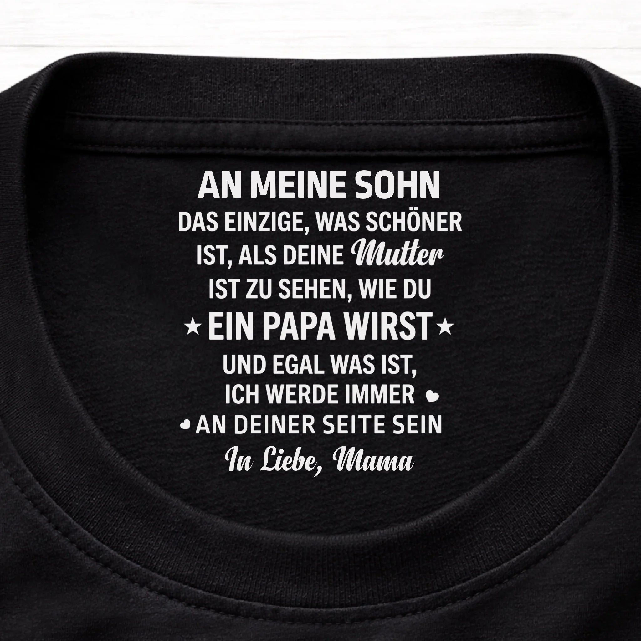 Dieses personalisierte T-Shirt mit Innenhalsausschnitt-Druck fügt Ihrer täglichen Kleidung eine subtile und bedeutungsvolle Note hinzu. Es verwandelt ein einfaches Basic in etwas ganz Besonderes – komfortabel und mit persönlicher Botschaft, die nur Sie sehen.